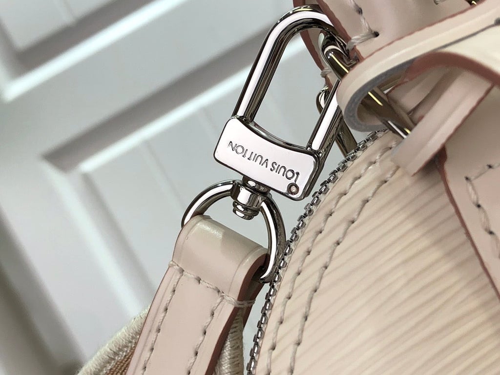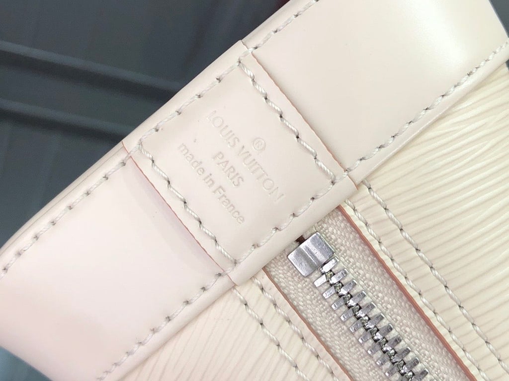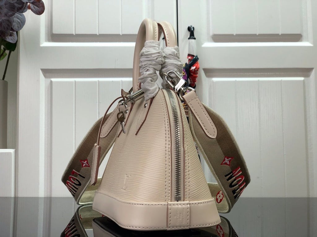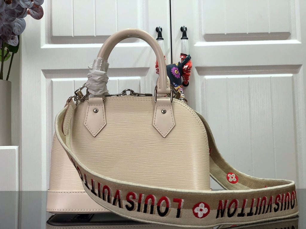 - Epi leather trim and Jacquard strap. Microfibre lining