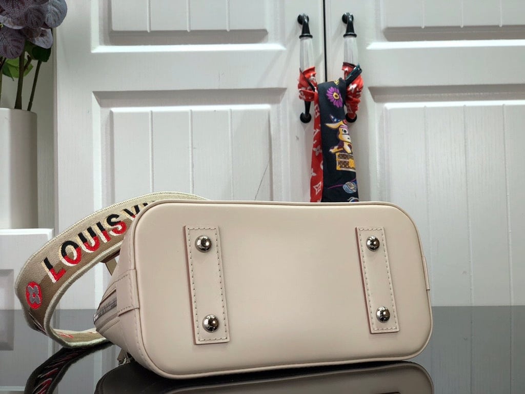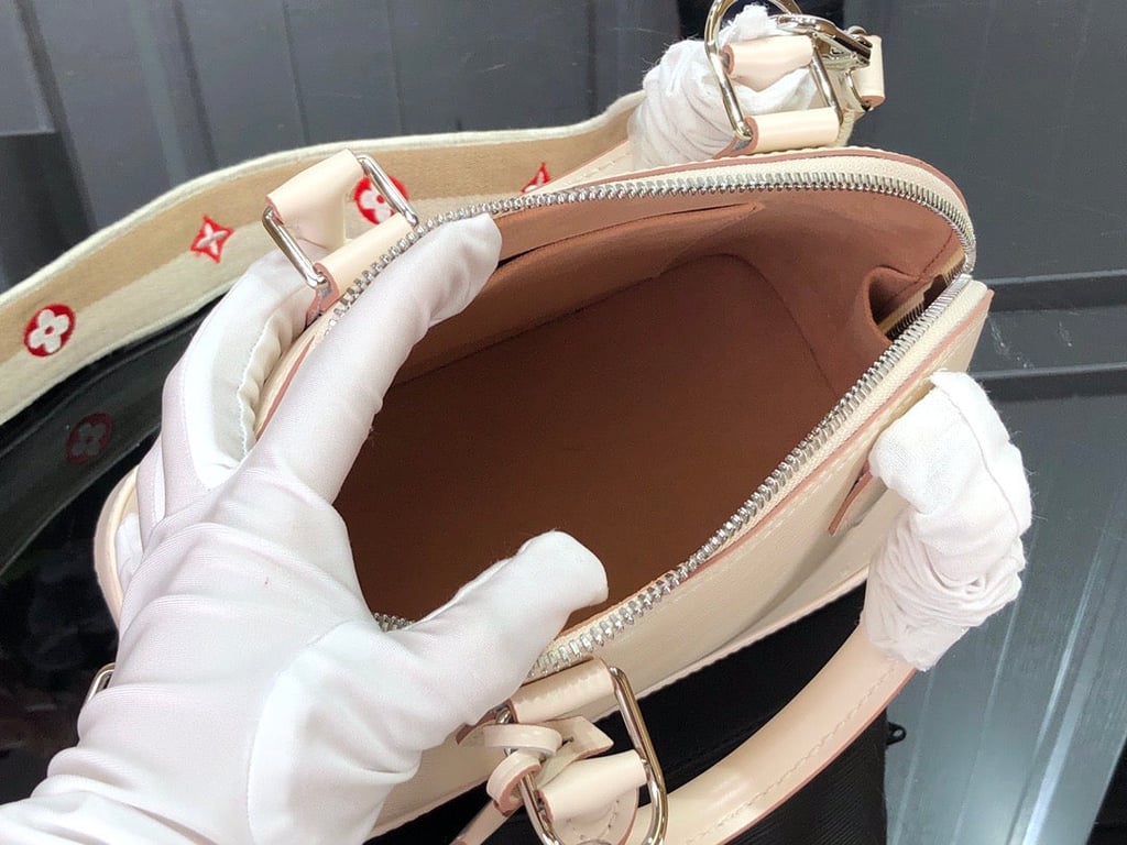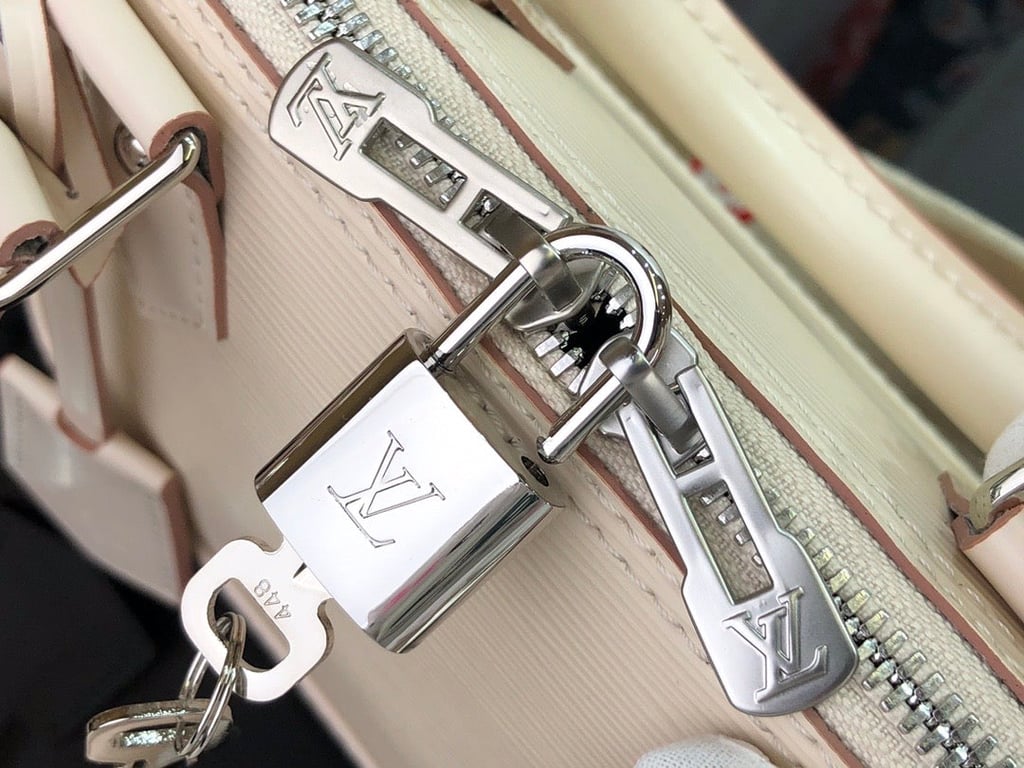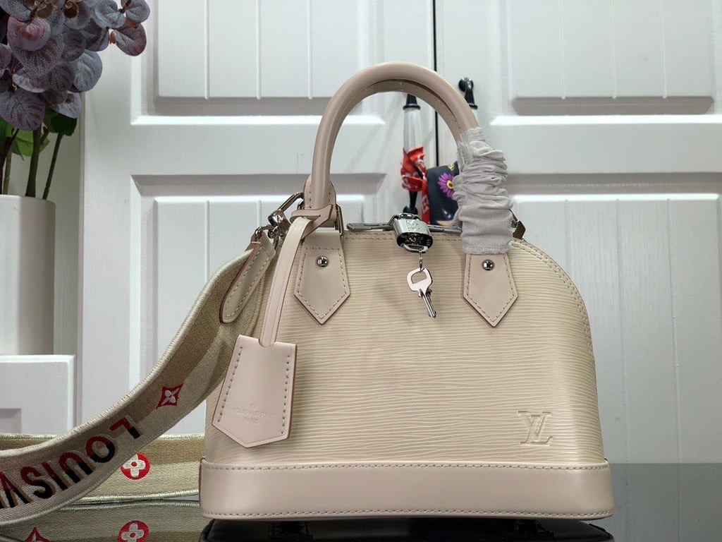 - Epi leather trim and Jacquard strap. Microfibre lining