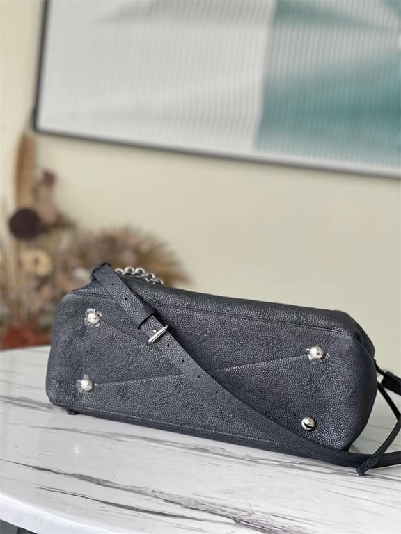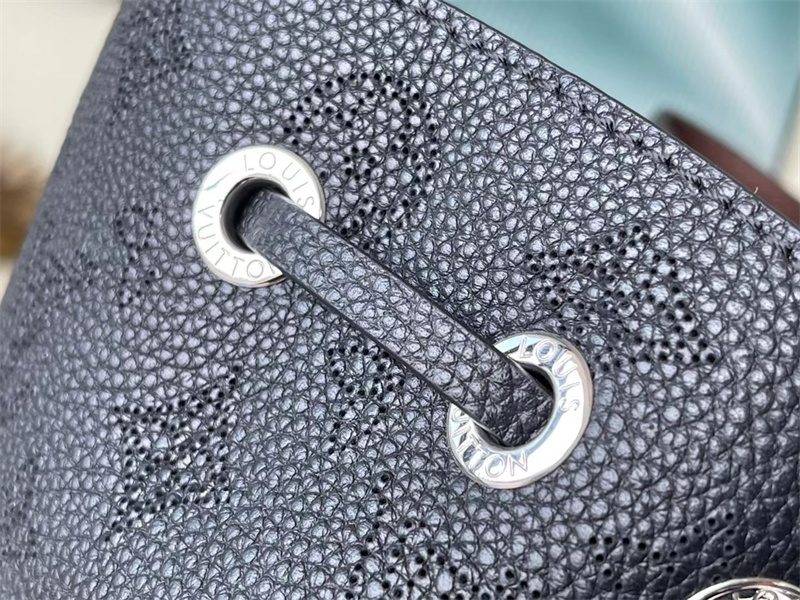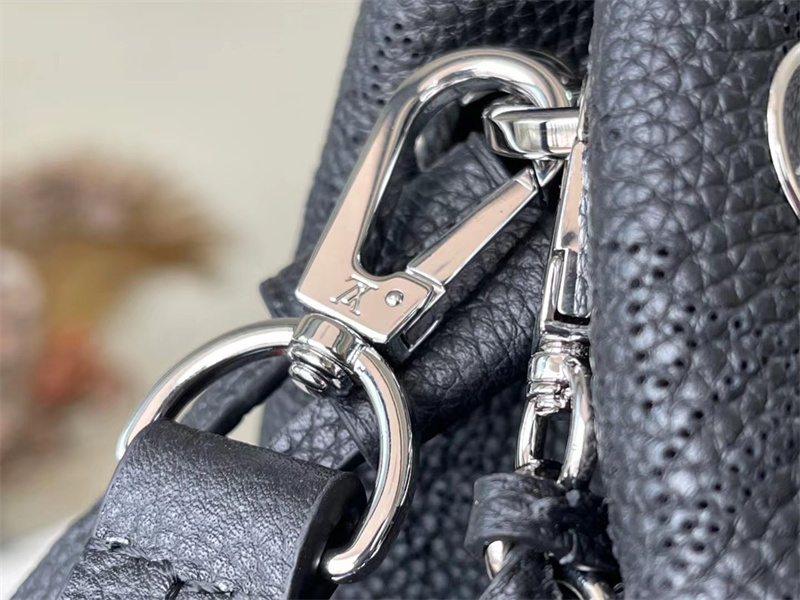 This black Louis Vuitton bag features soft Mahina perforated calfskin, a microfiber lining, and silver hardware.