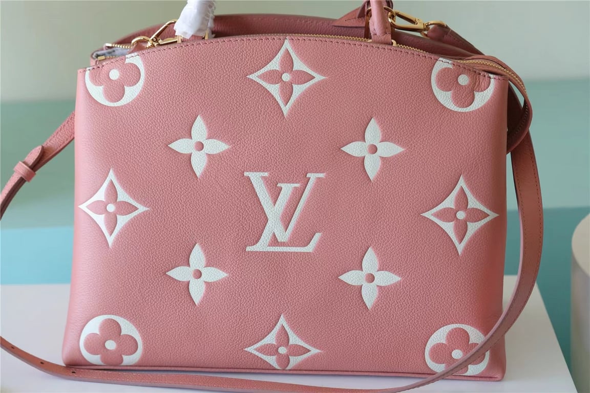 - Both chic and impeccably functional, the Grand Palais tote bag is made from soft-grained , embossed with an oversized Monogram pattern. Its name tag and gold-color padlock evoke the House?s travel heritage. An ideal day-to-business bag, its well-organized interior includes multiple pockets and compartments. It offers several carries: hand, elbow and cross-body thanks to its ajustable and removable strap.