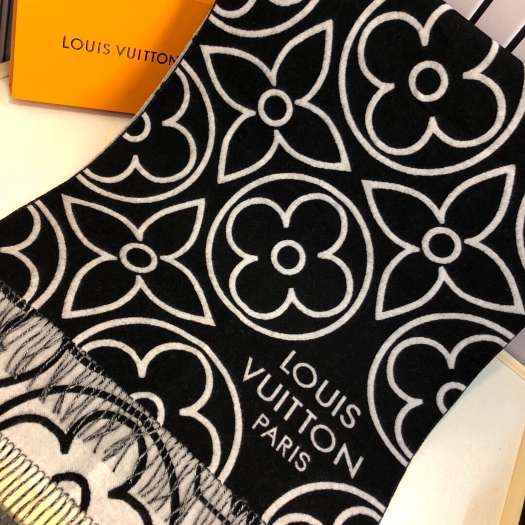LOUIS VUITTON IN BLOOM CASHMERE SCARF BLACK 180CM