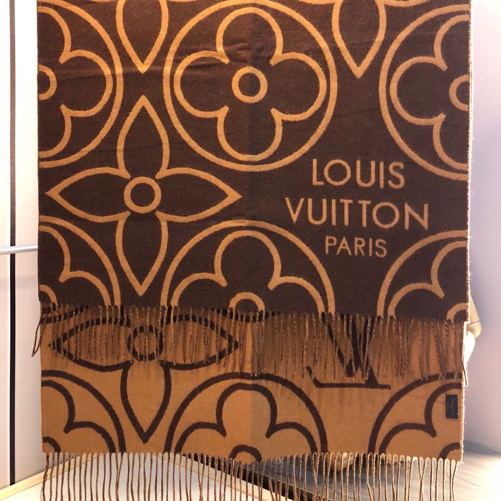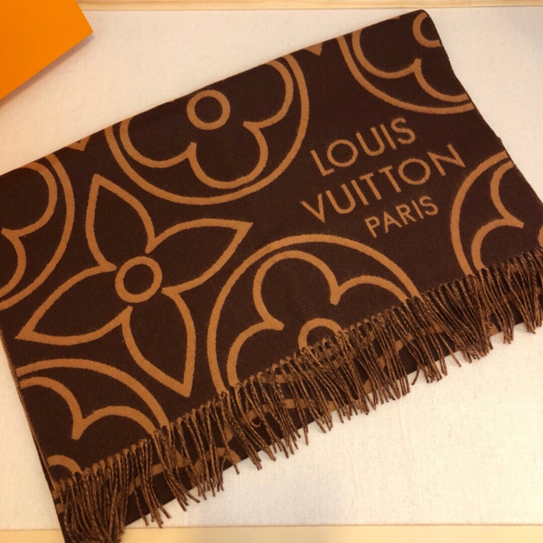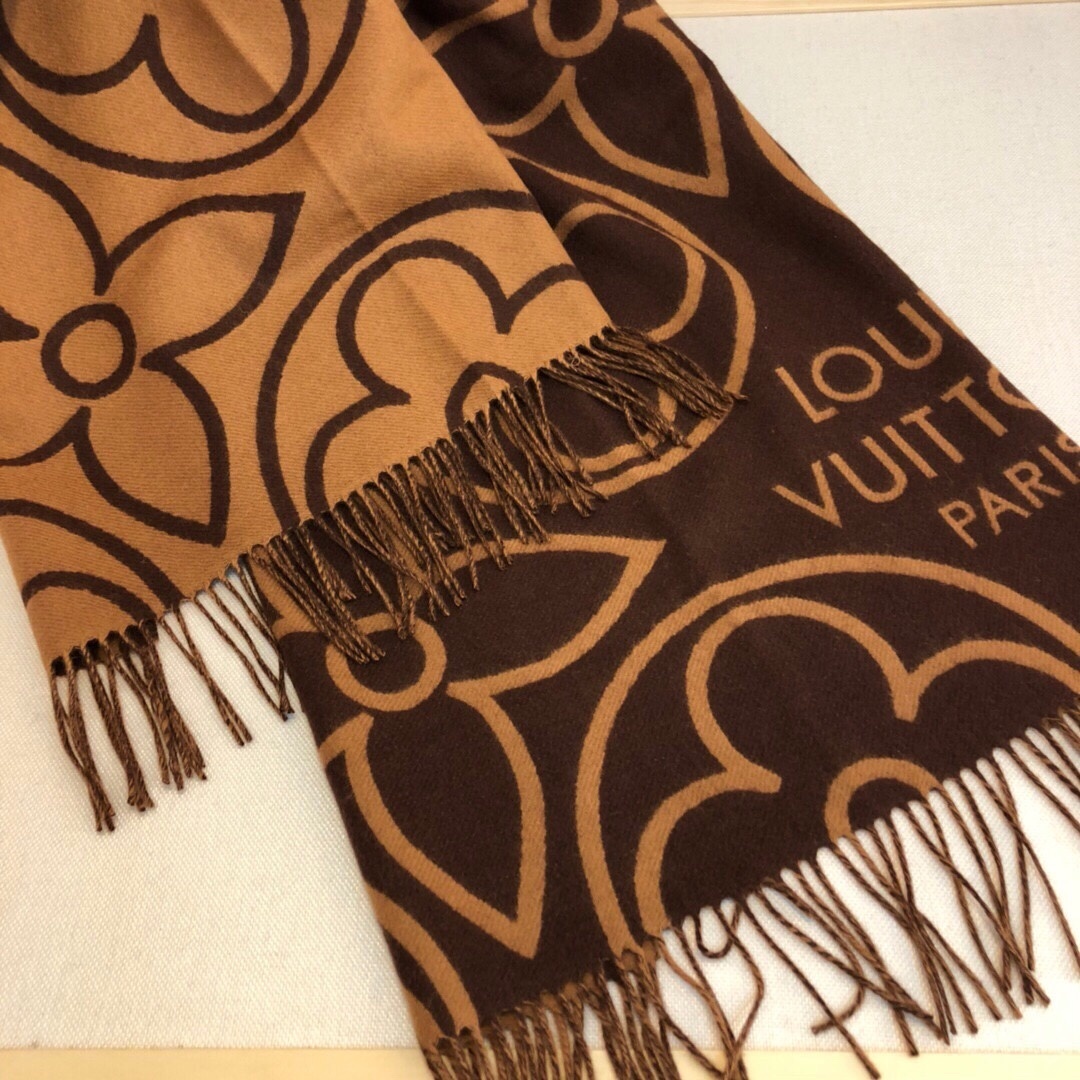 LOUIS VUITTON IN BLOOM CASHMERE SCARF BROWN 180CM