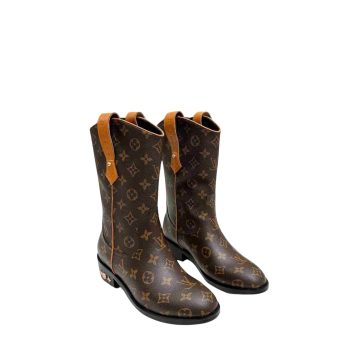 The Legacy ankle boot is characterized by its pointed toe and high stiletto heel, it is notable for the strap detail in Monogram canvas at the back, which references the handles of Louis Vuitton trunks.