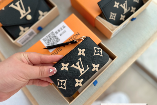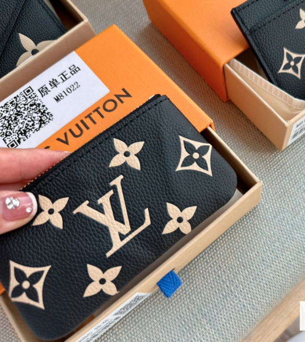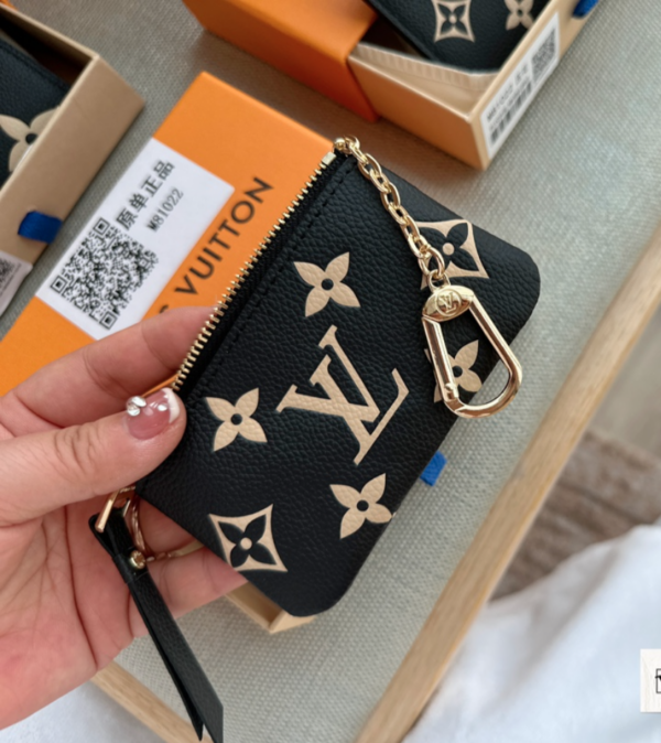 LOUIS VUITTON MONOGRAM KEY POUCH BLACK AND BEIGE 12CM M80885