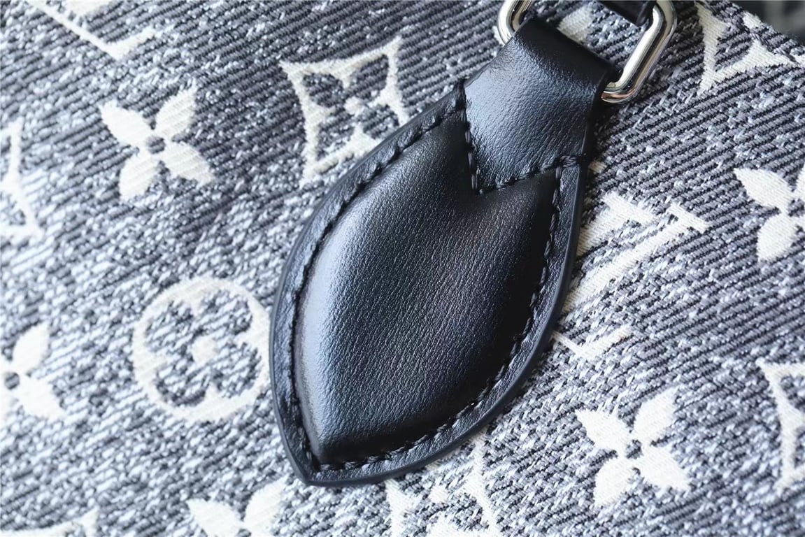 LOUIS VUITTON GRAY 13.8IN/35CM ONTHEGO MM MONOGRAM JACQUARD DENIM SHOUDER BAGS