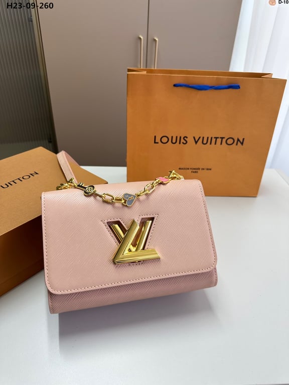 LOUIS VUITTON TWIST MM BAGS EPI LEATHER LOCK CHAIN PINK 23CM