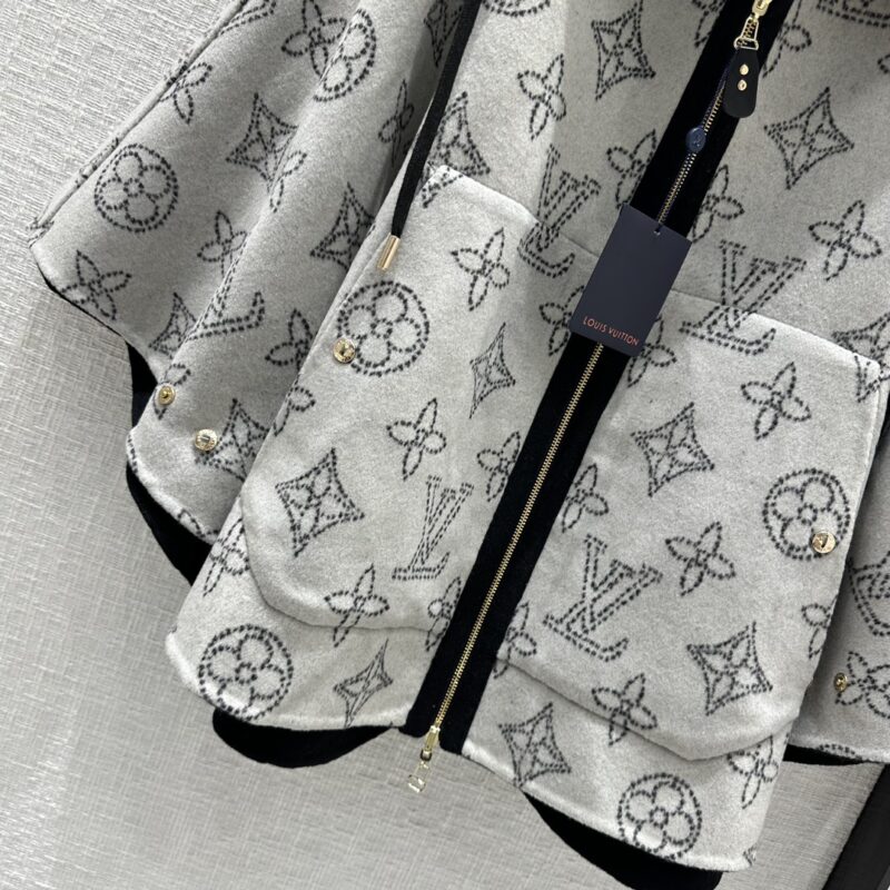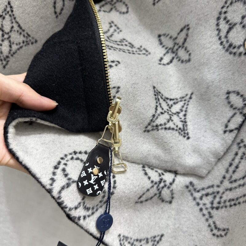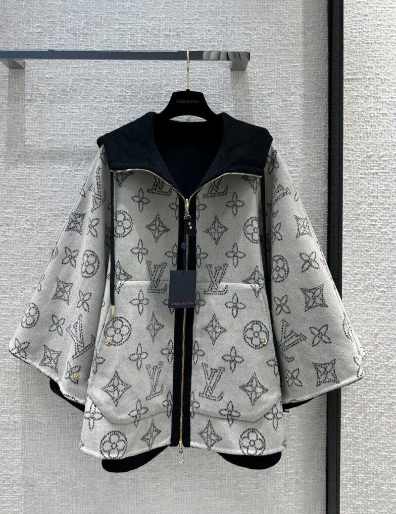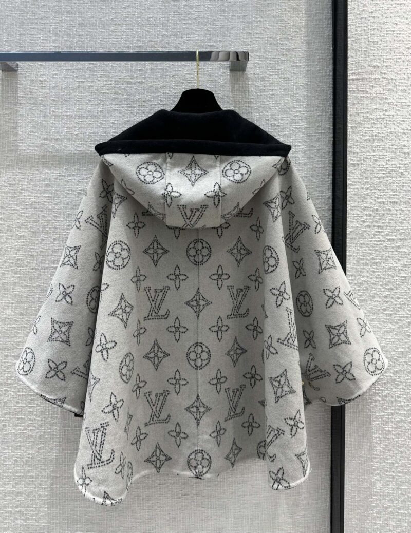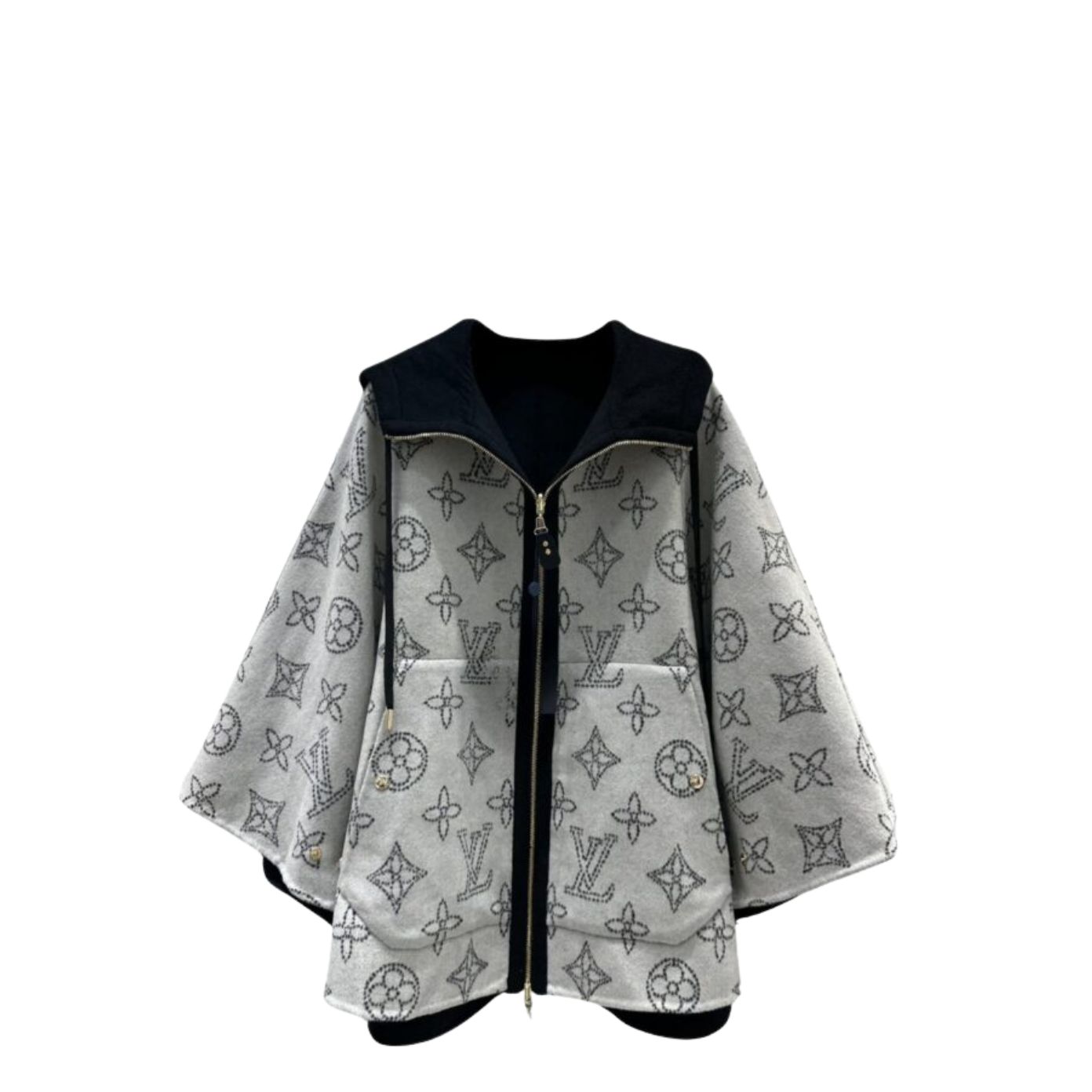 LOUIS VUITTON WOOL HOODED WRAP CAPE COAT GREY AND BLACK