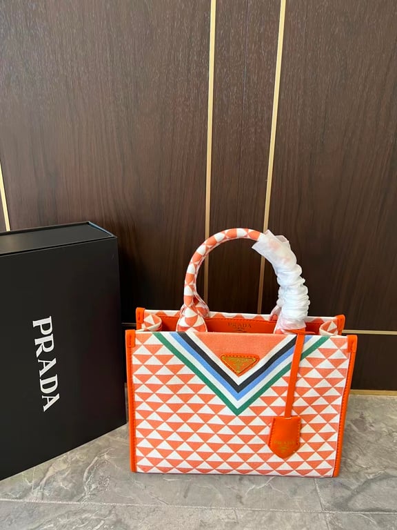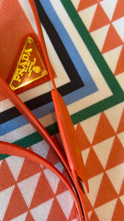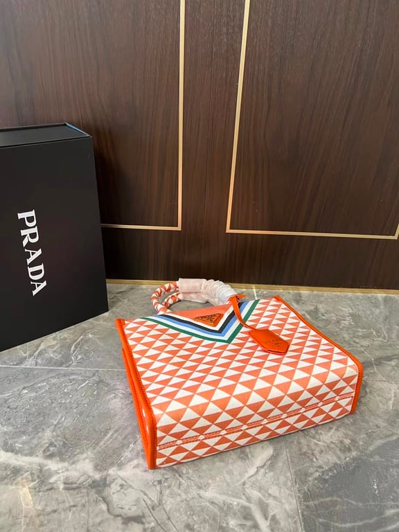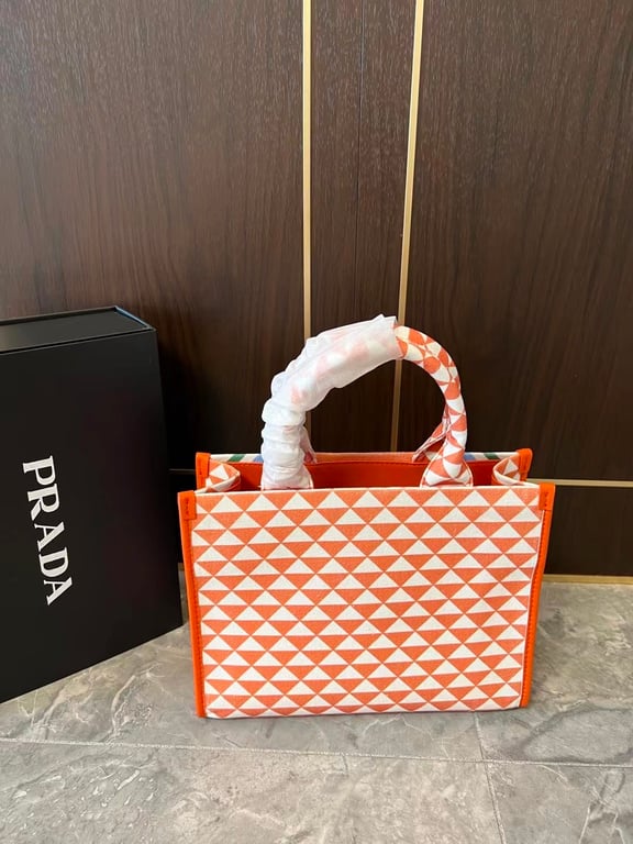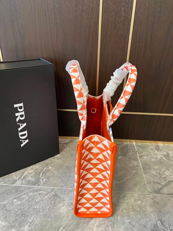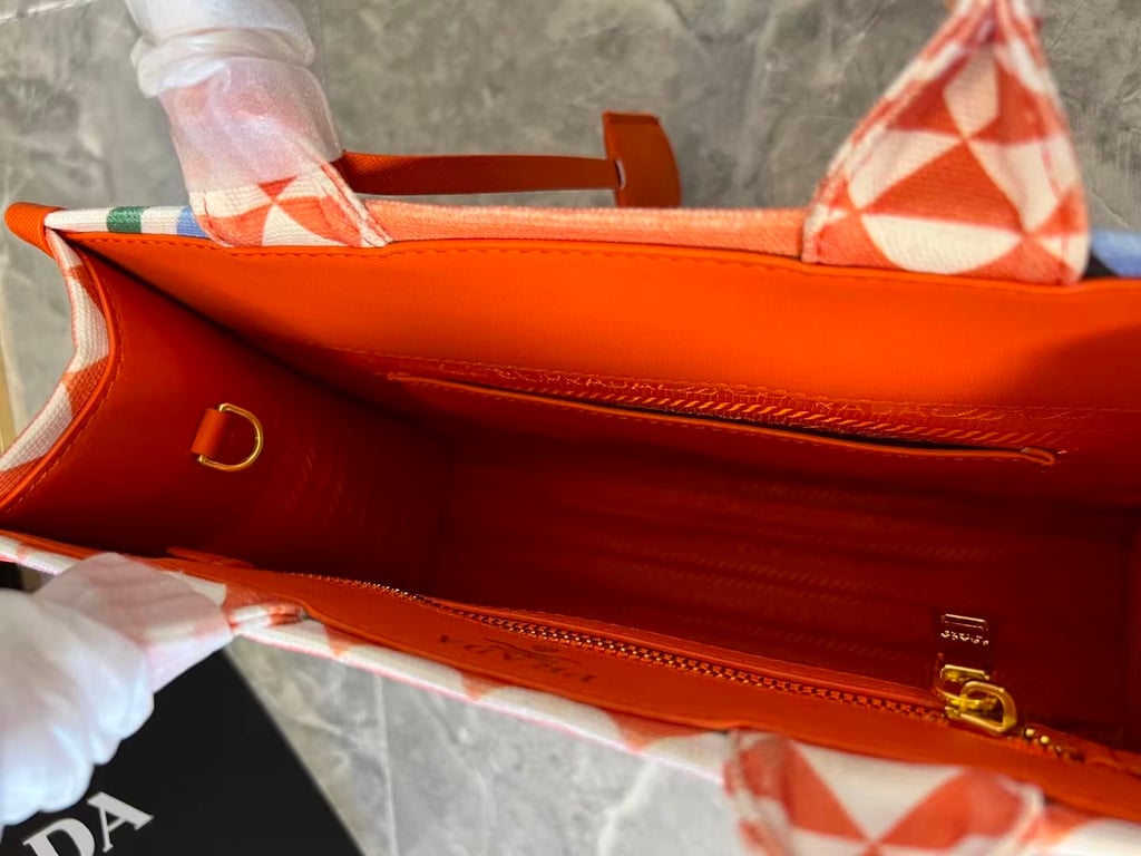 PRADA ORANGE EMBROIDERED FABRIC TOTE BAG