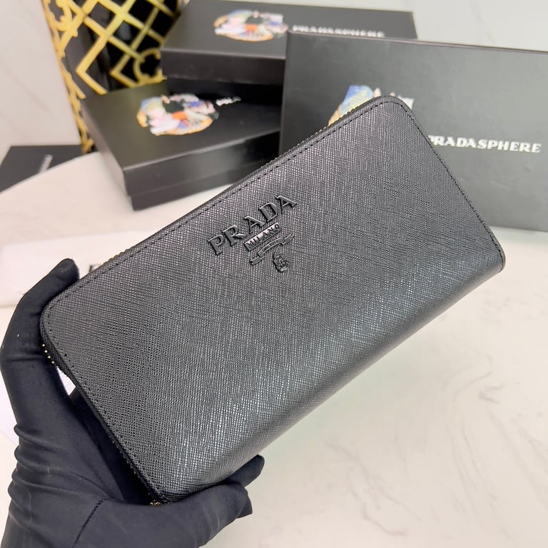 PRADA LARGE SAFFIANO LEATHER WALLET FULL BLACK 19CM 1ML506 QWA F0505