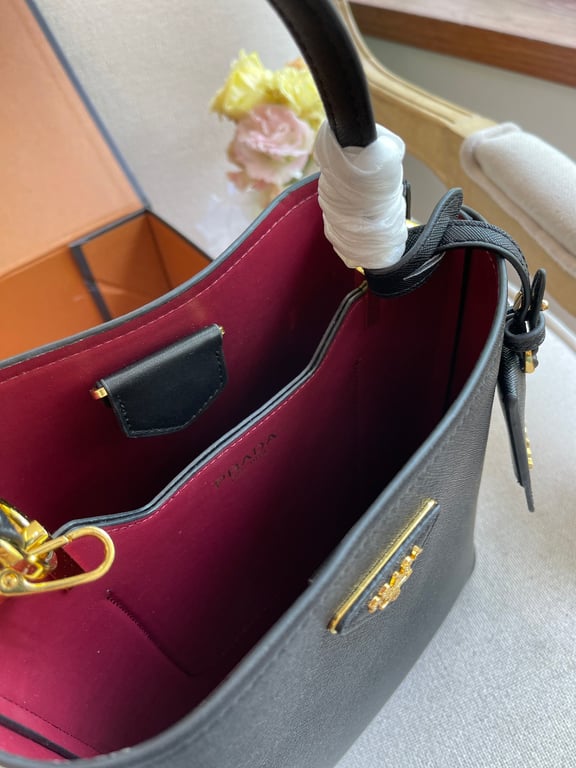 PRADA MEDIUM SAFFIANO LEATHER PANIER BAG BLACK 1BA2122ERXF0LJ4VOOO