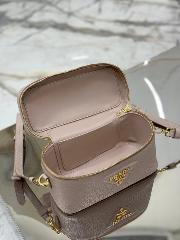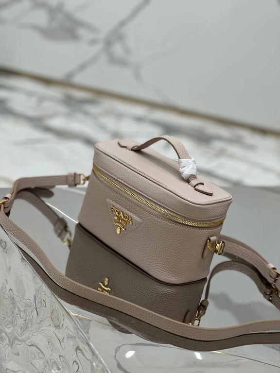 PRADA MINI CLAY GREY LEATHER BAG 18CM