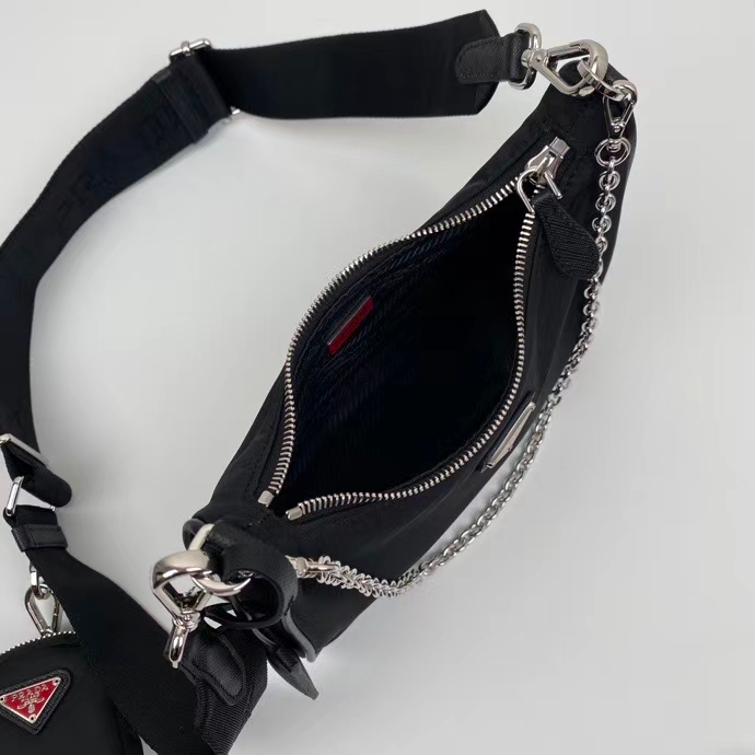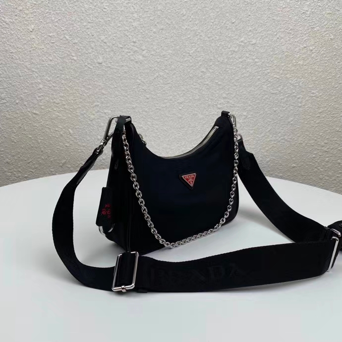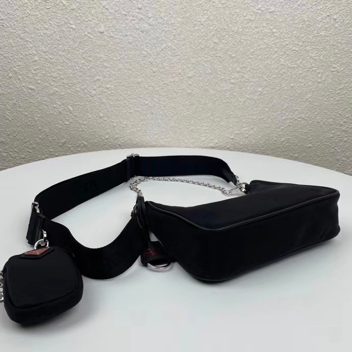 PRADA MINI RE-EDITION 2005 RE-NYLON BLACK WITH RED LOGO