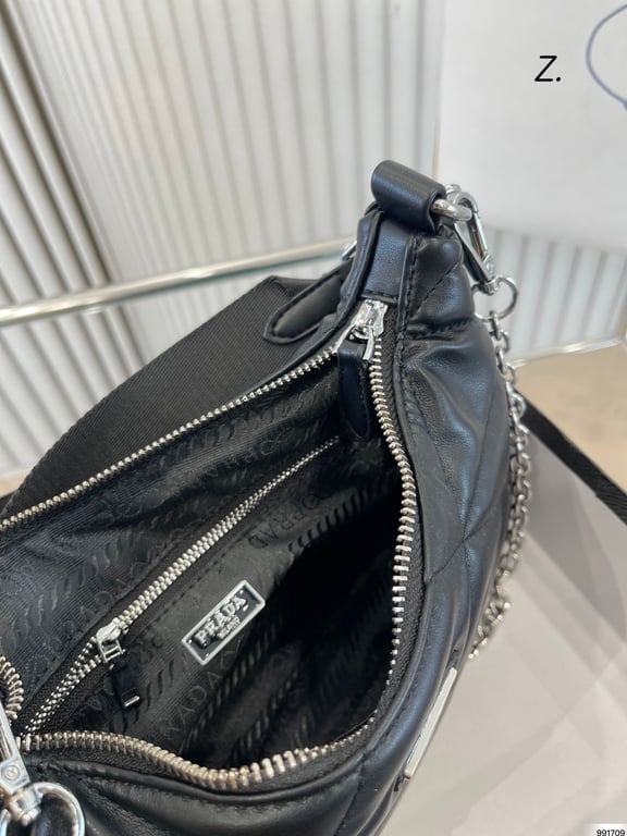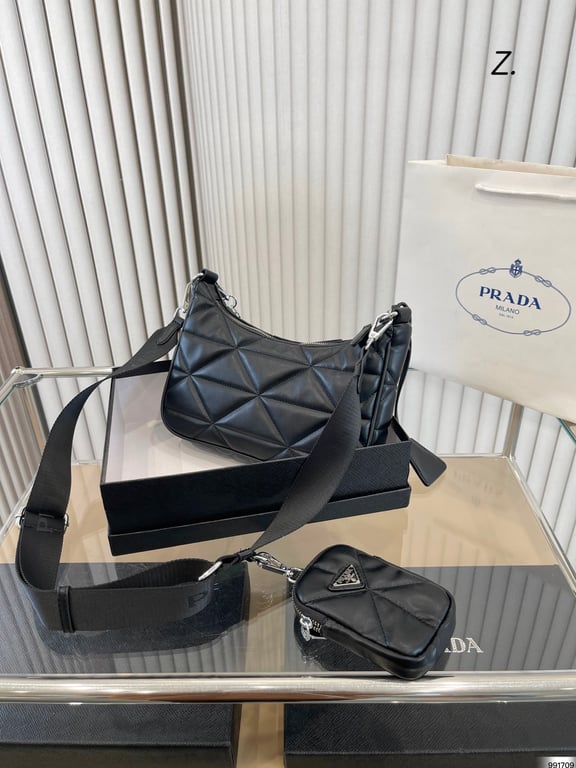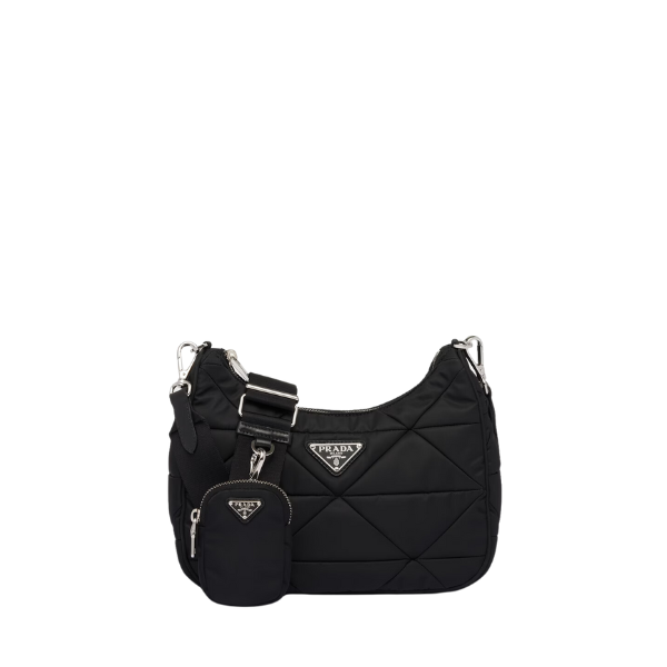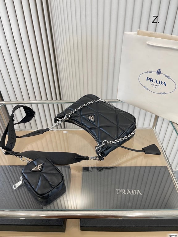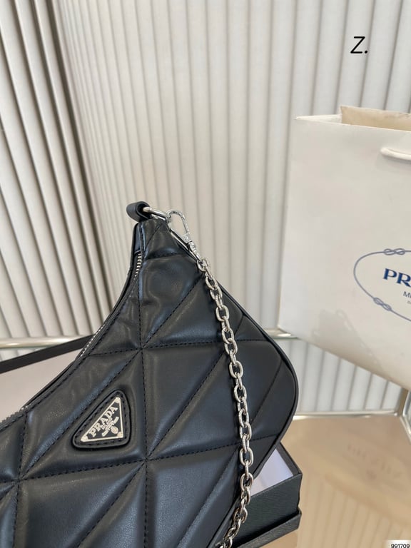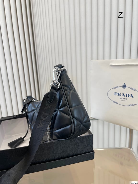PRADA PADDED LEATHER SHOULDER BAG BLACK 25CM