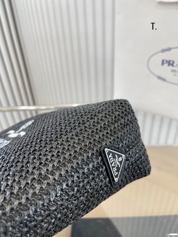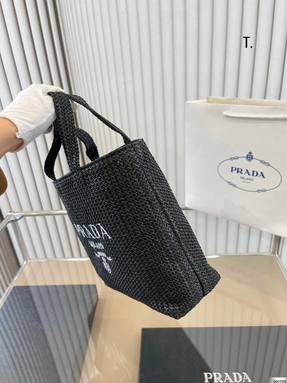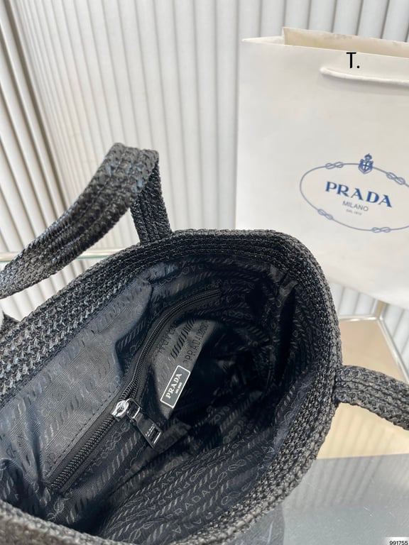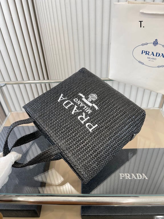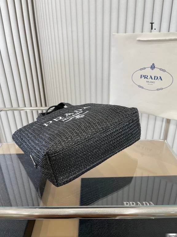 PRADA RAFFIA TOTE BAG BLACK 24CM