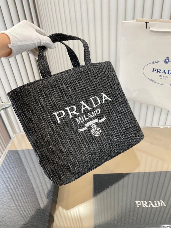 PRADA RAFFIA TOTE BAG BLACK 24CM