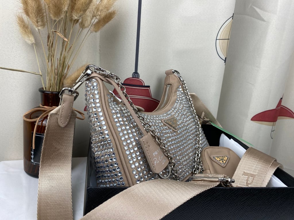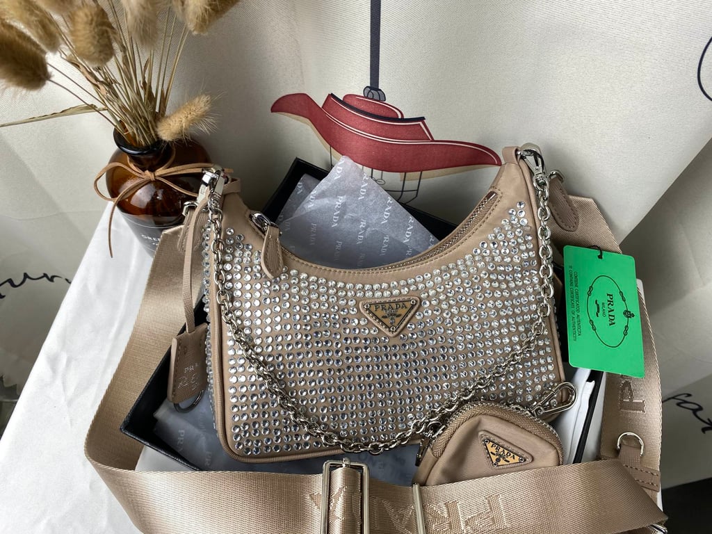 PRADA RE-EDITION 2005 SATIN BAG WITH BEIGE