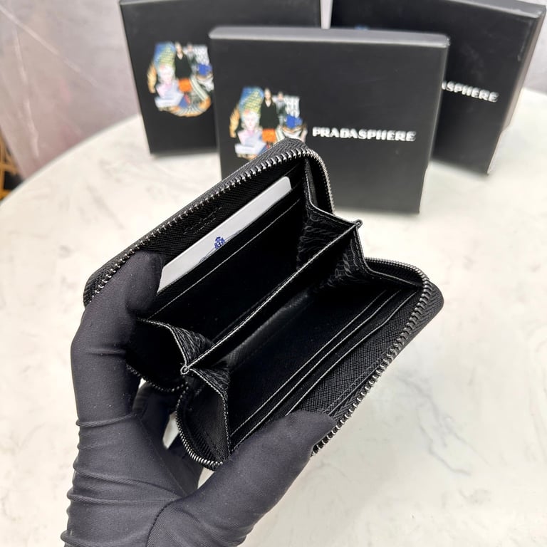PRADA SAFFIANO LEATHER COIN PURSE FULL BLACK WALLET 10CM 1MM268 QWA F0016