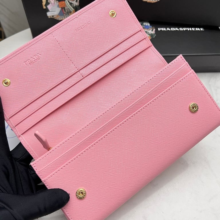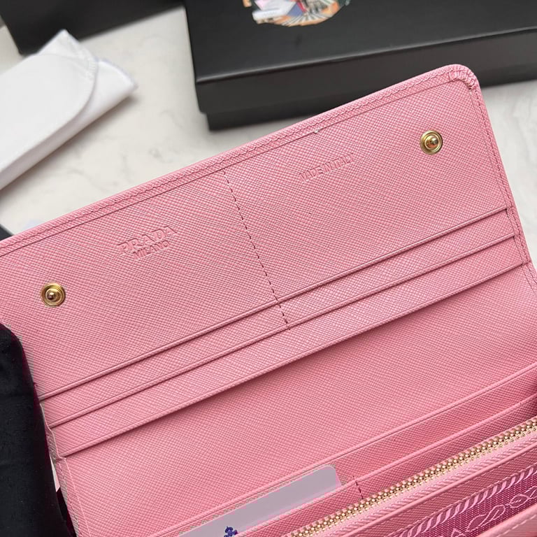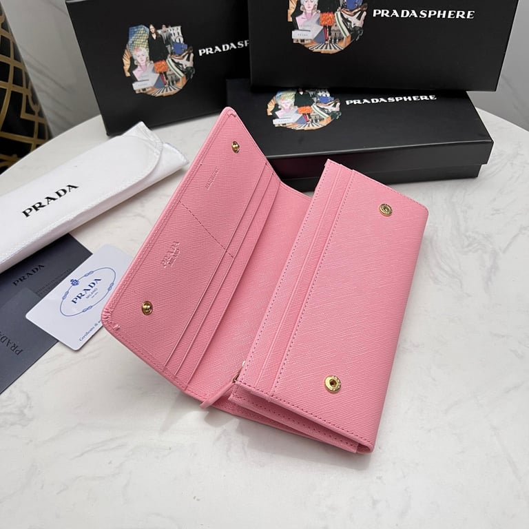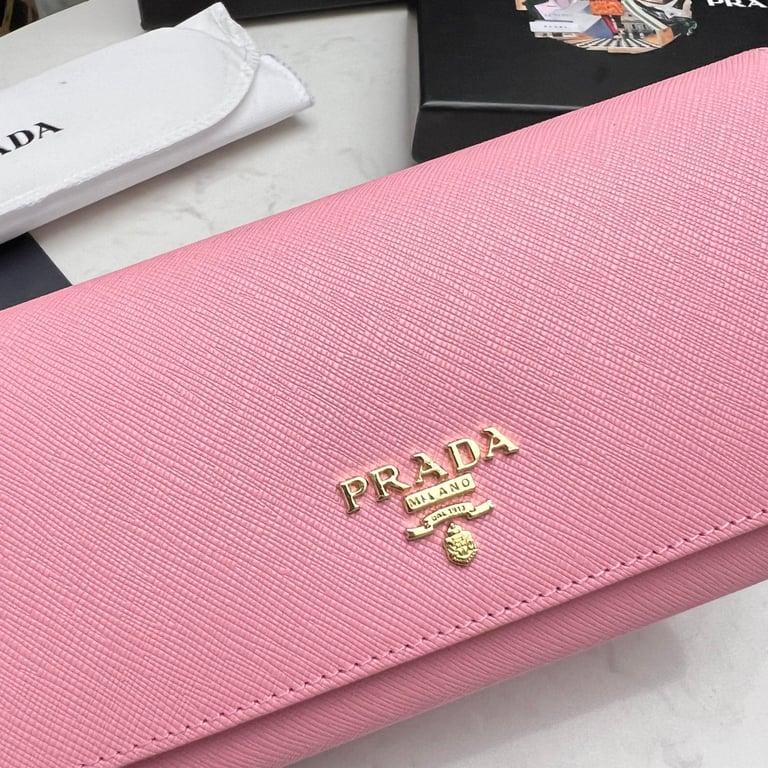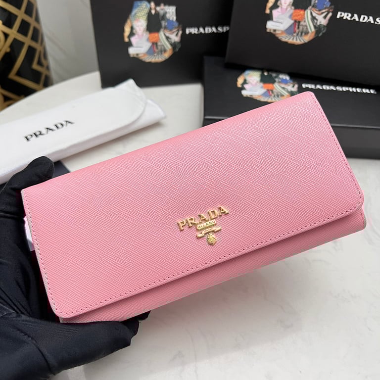 PRADA SAFFIANO LEATHER FLAP LONG WALLET PETAL PINK AND GOLD 19CM