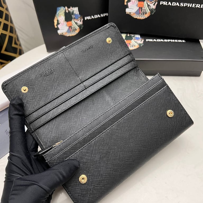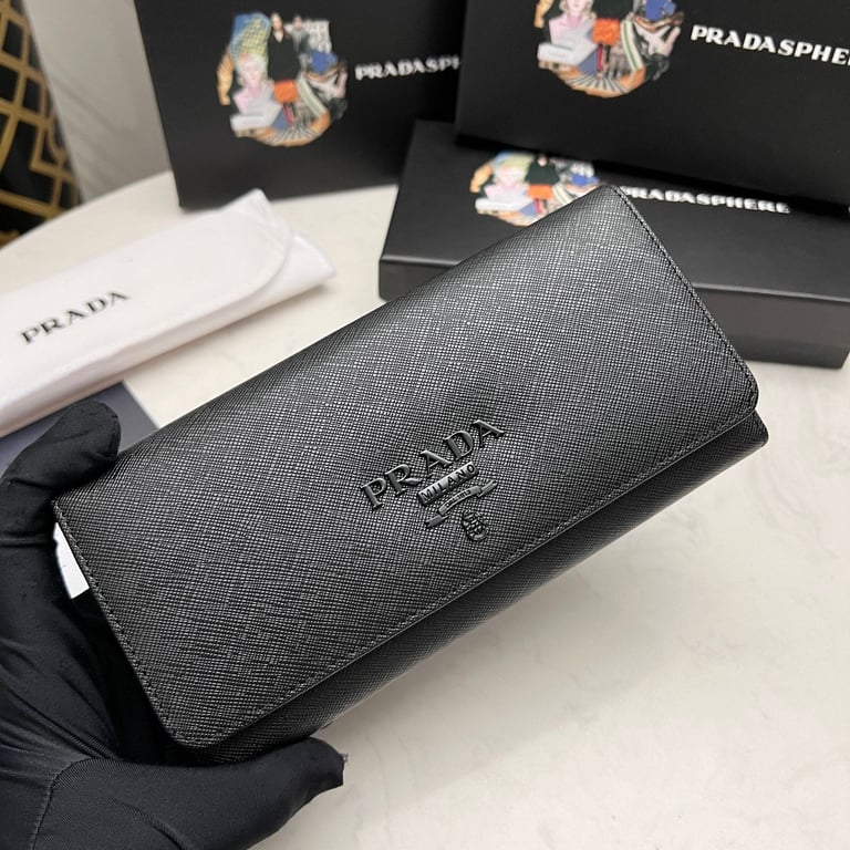PRADA’S SAFFIANO MONOCHROME FLAP LONG WALLET FULL BLACK 19CM 1MH132 ZLP F061H