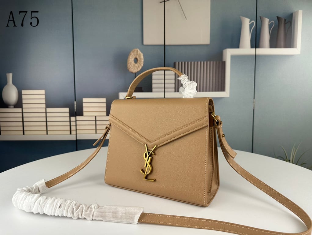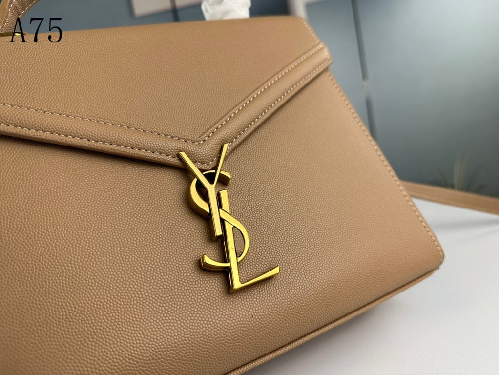 SAINT LAURENT CASSANDRA MEDIUM TOP HANDLE IN GRAIN DE POUDRE EMBOSSED DARK BEIGE 24CM