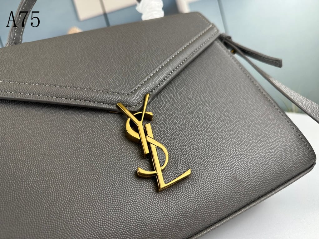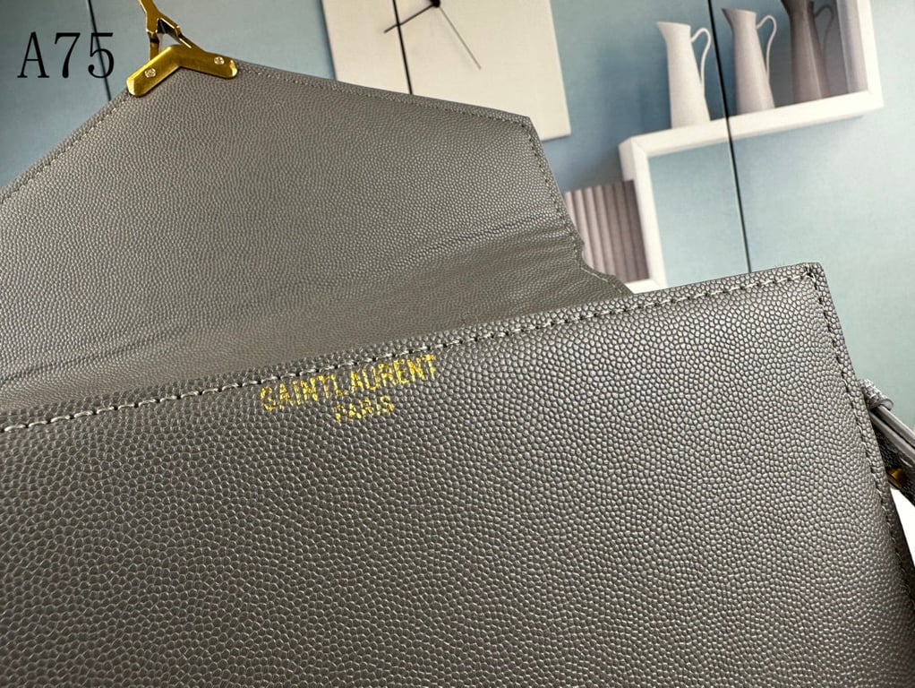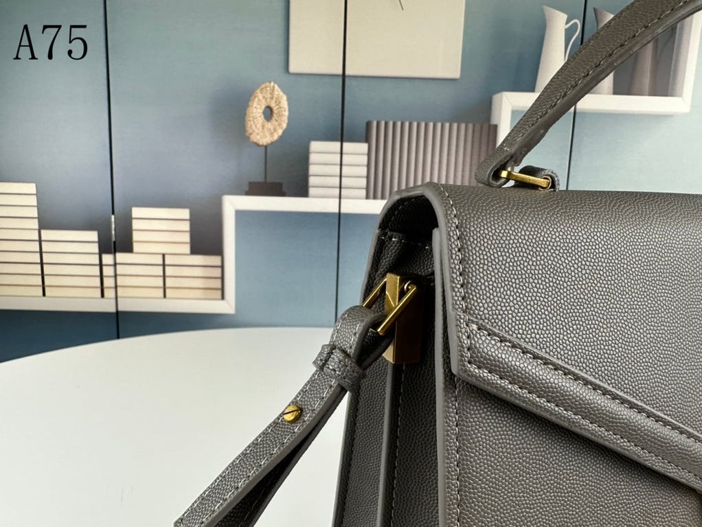 SAINT LAURENT CASSANDRA MEDIUM TOP HANDLE IN GRAIN DE POUDRE EMBOSSED FOG LEATHER 24CM