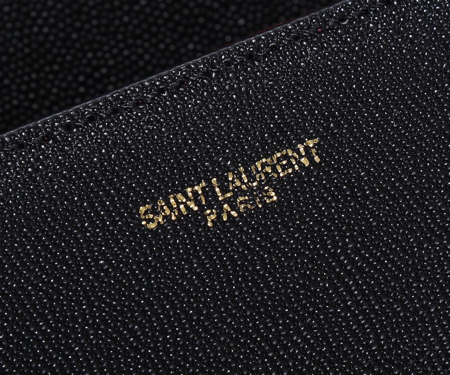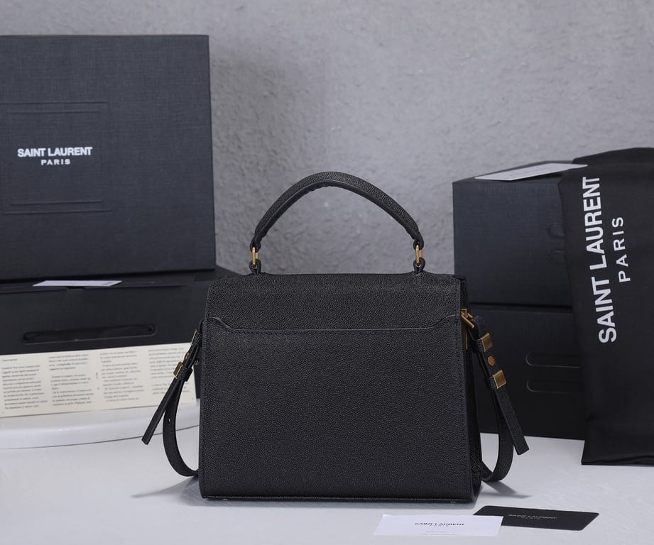 SAINT LAURENT CASSANDRA MINI TOP HANDLE BAG IN GRAIN DE POUDRE EMBOSSED BLACK GOLD 20CM