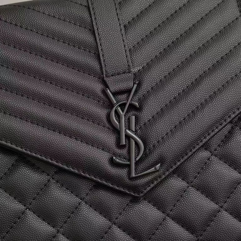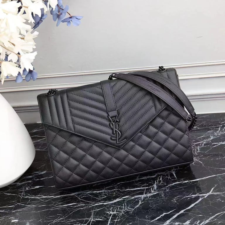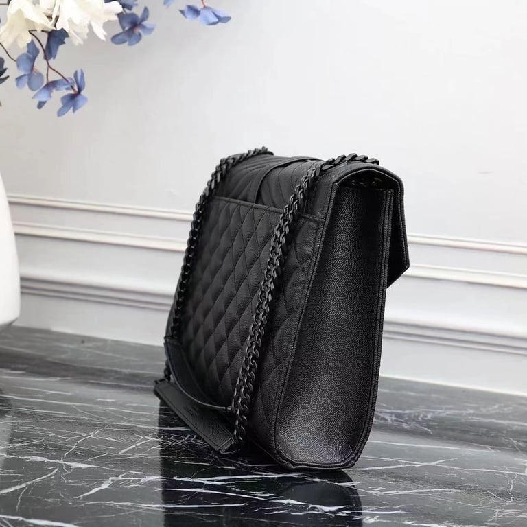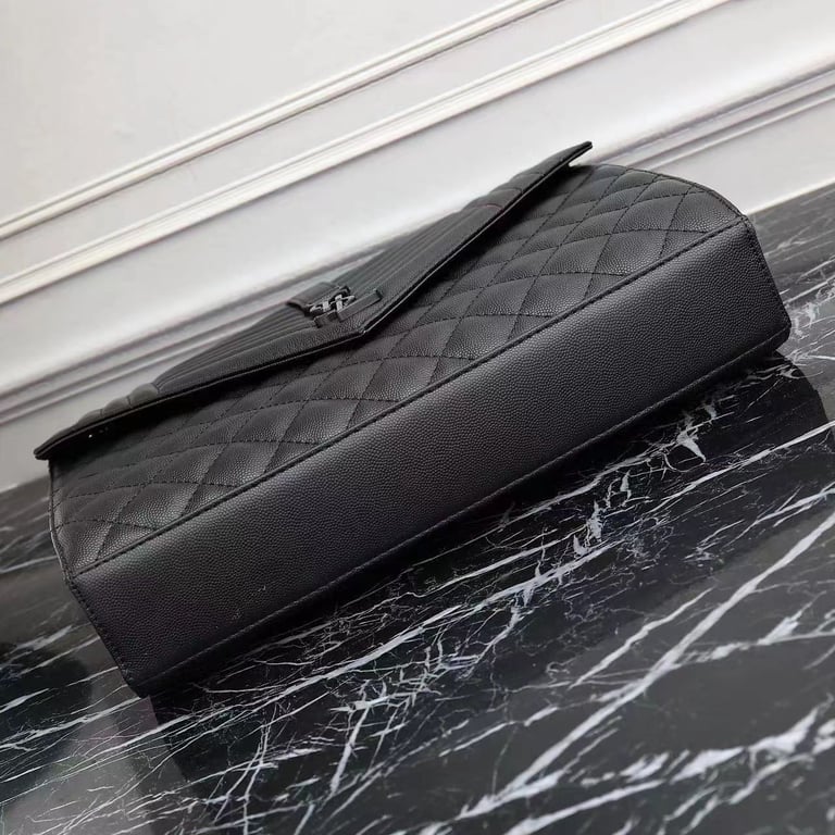 SAINT LAURENT ENVELOPE LARGE BAG IN MIX MATELASSE GRAIN DE POUDRE EMBOSSED LEATHER BLACK 31CM