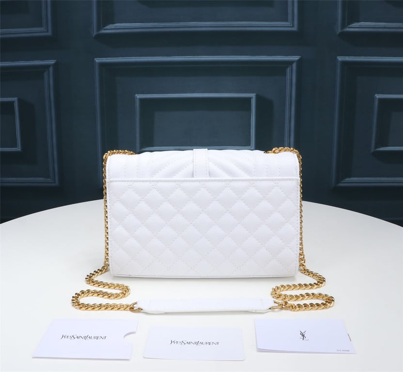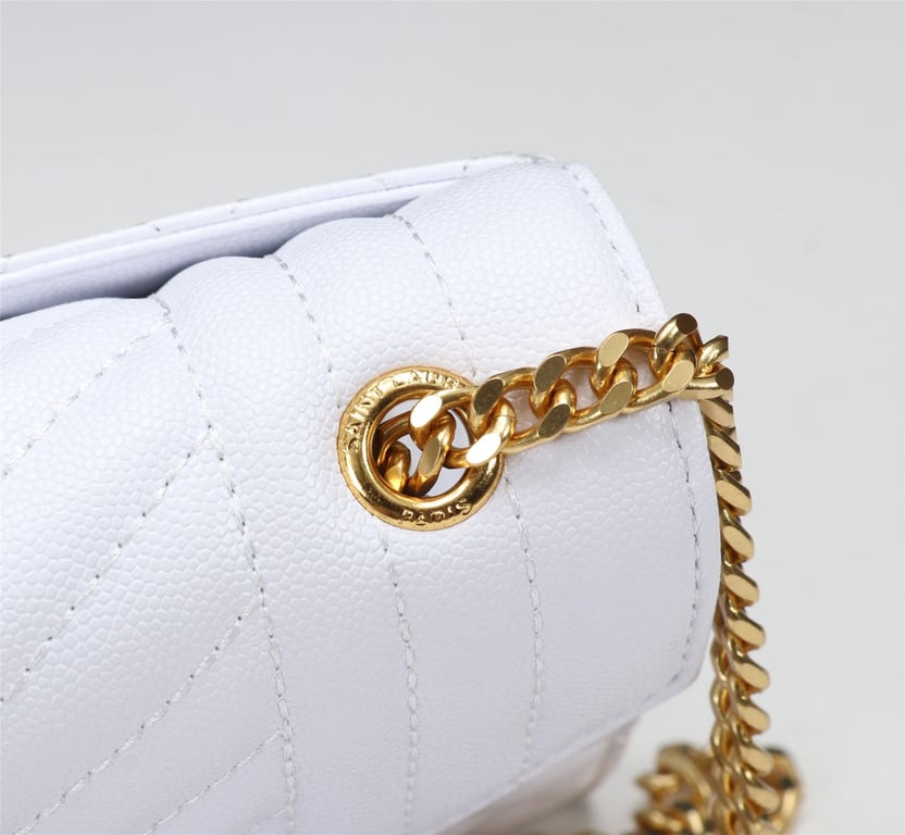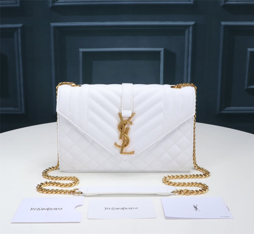 SAINT LAURENT ENVELOPE SMALL BAG IN MIX MATELASSE GRAIN DE POUDRE EMBOSSED WHITE
