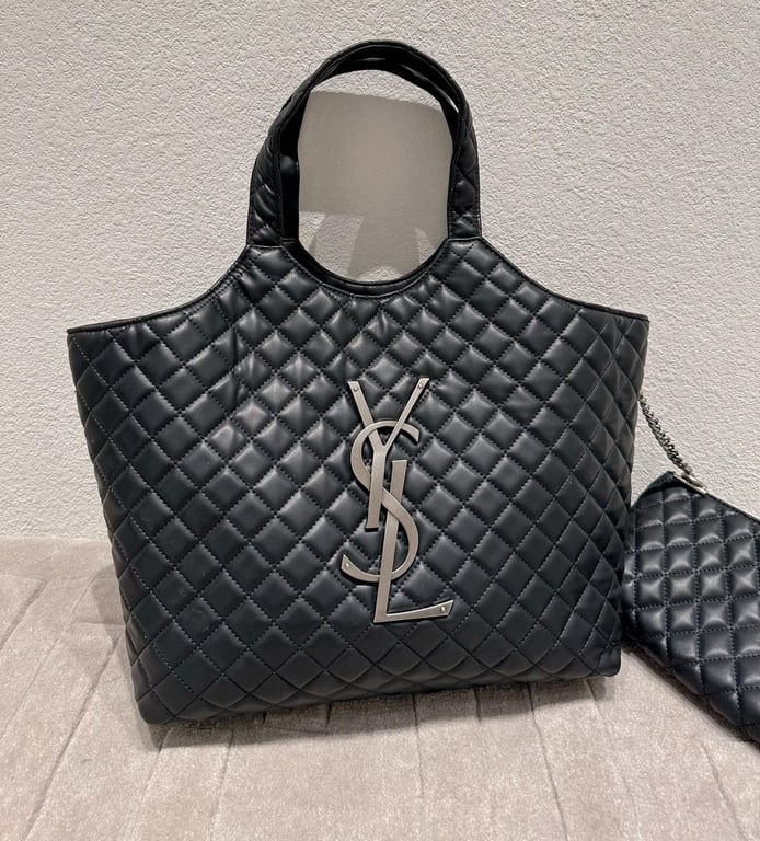 SAINT LAURENT’S ICARE SHOPPING BAG IN QUILTED LAMBSKIN BLACK SILVER 40CM
