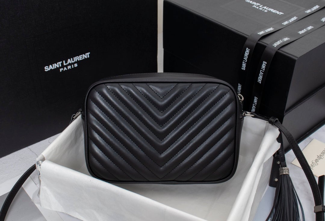 SAINT LAURENT LOU CAMERA BAG IN QUILTED BLACK SILVER LEATHER 23CM