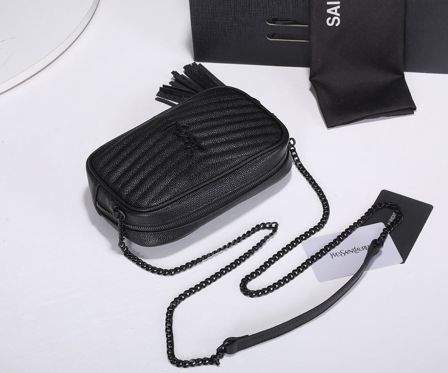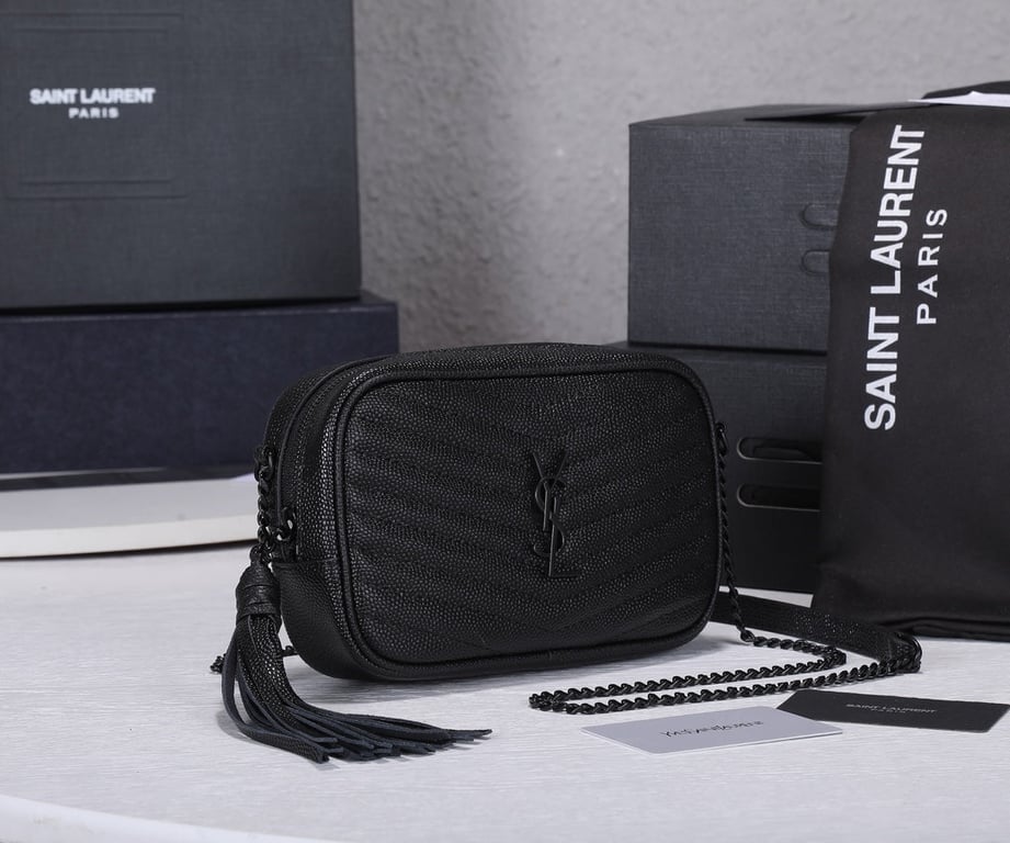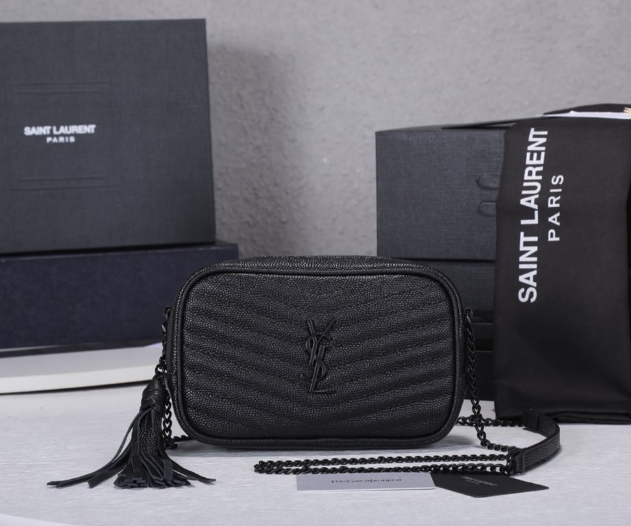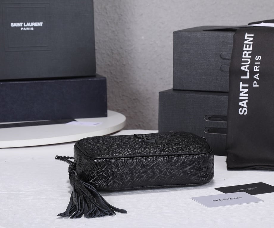 SAINT LAURENT LOU CAMERA BAG IN QUILTED LEATHER BLACK 18CM