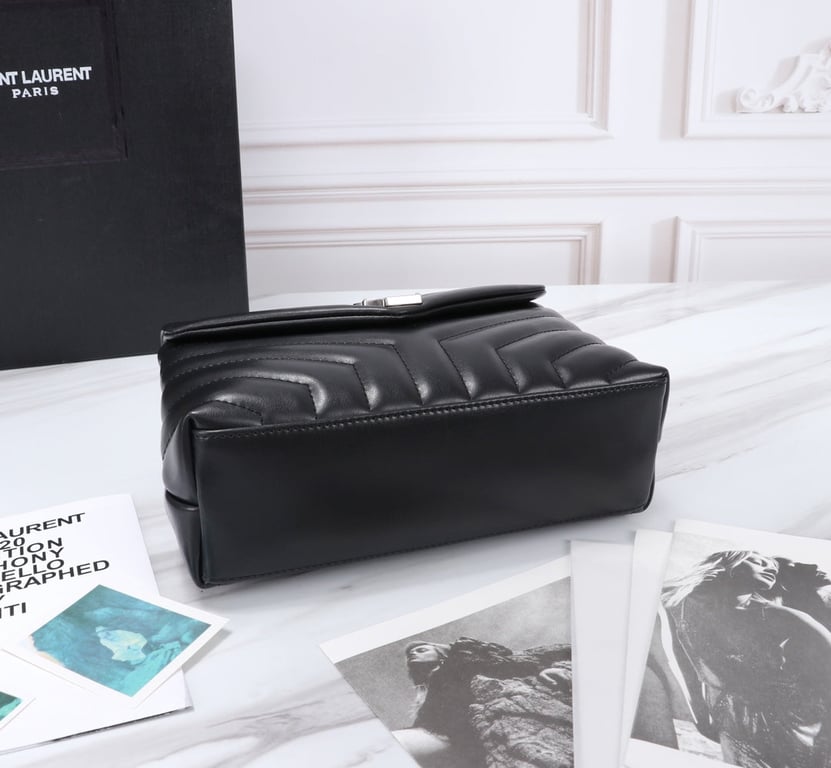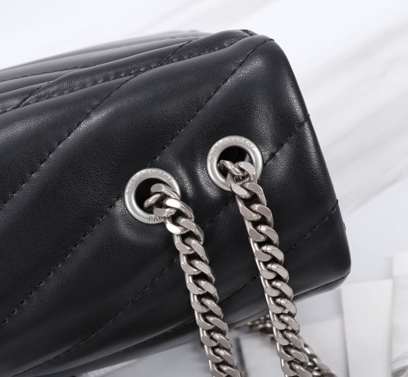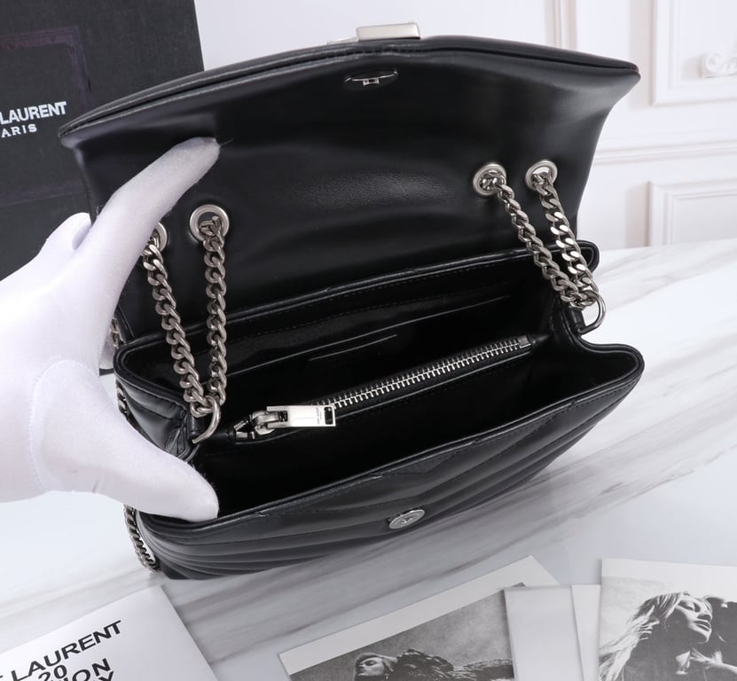 SAINT LAURENT LOULOU SMALL CHAIN BAG IN MATELASSE Y LEATHER BLACK SILVER 23CM