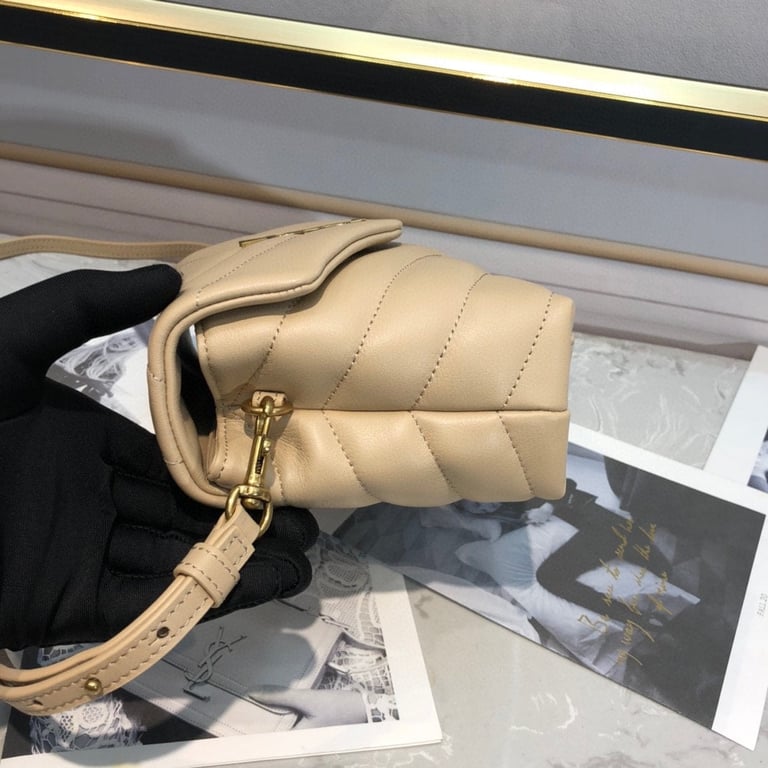 SAINT LAURENT LOULOU TOY STRAP BAG IN QUILTED Y LEATHER BEIGE