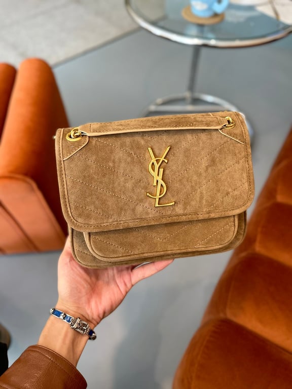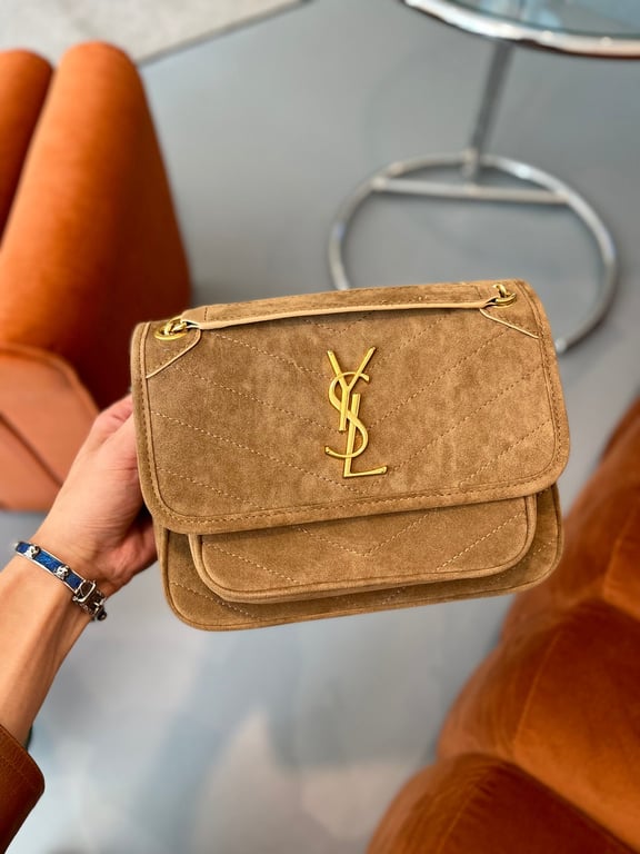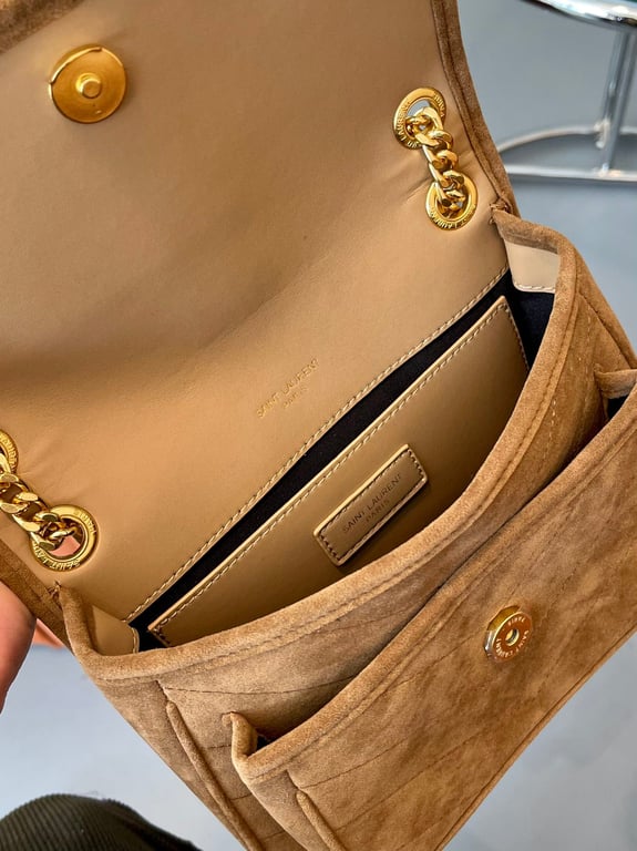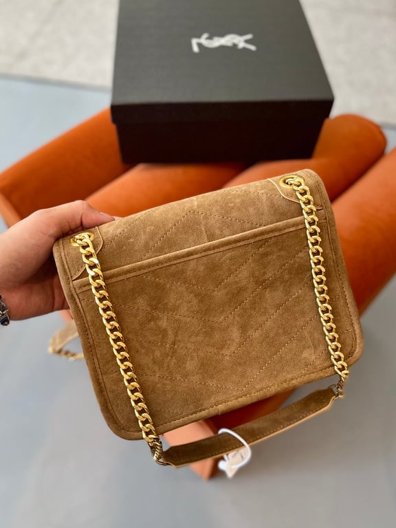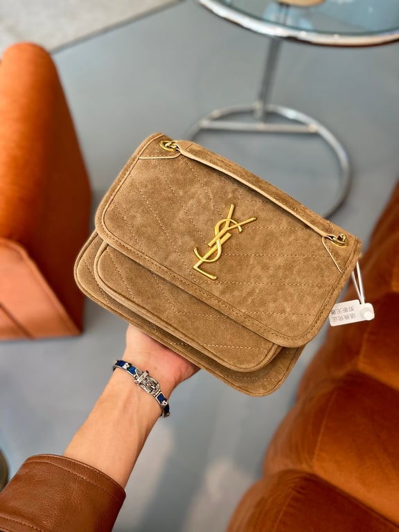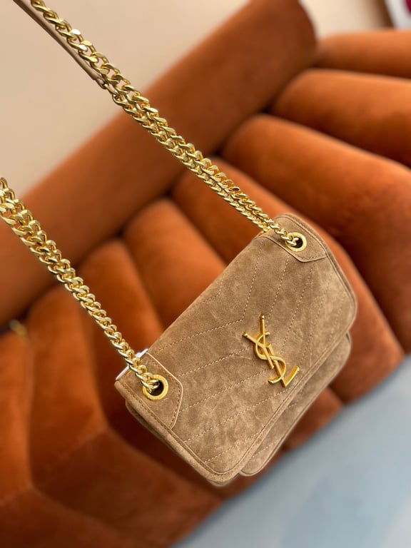 SAINT LAURENT NIKI MEDIUM QUILTED SUEDE SHOULDER BAG BEIGE HIGH QUALITY