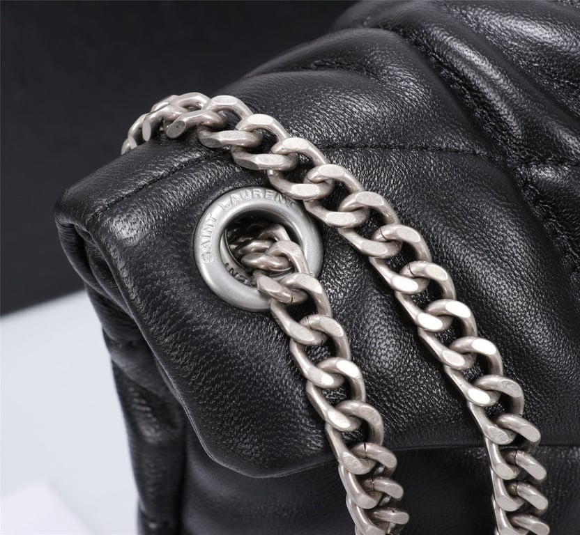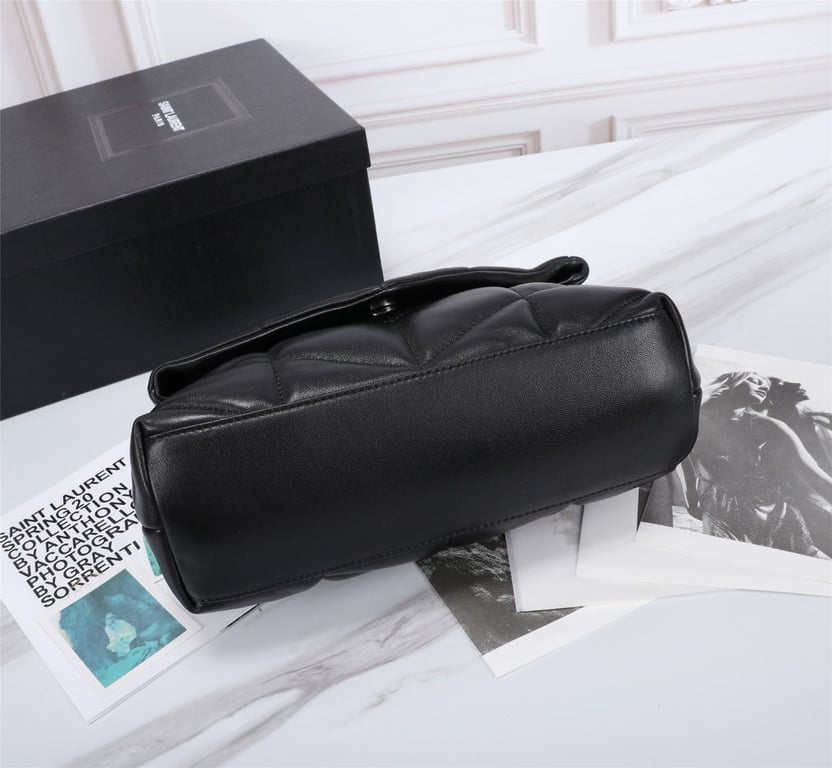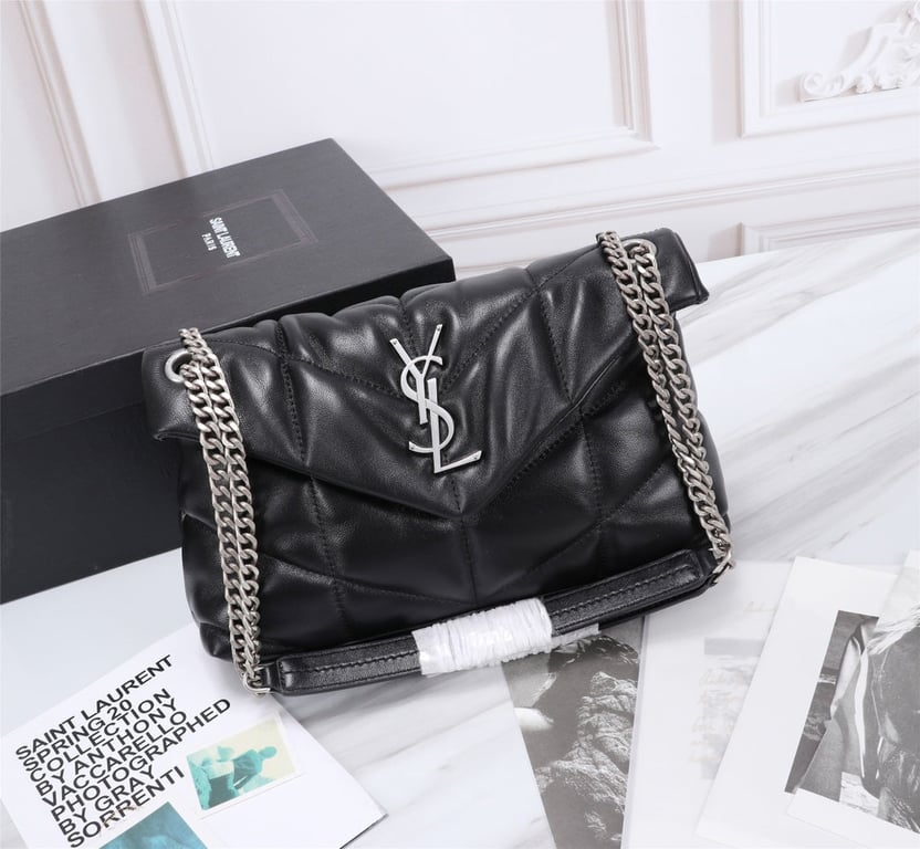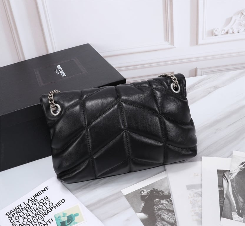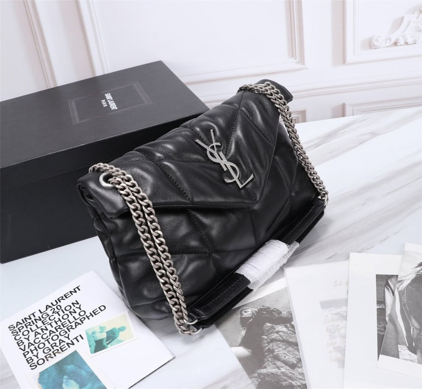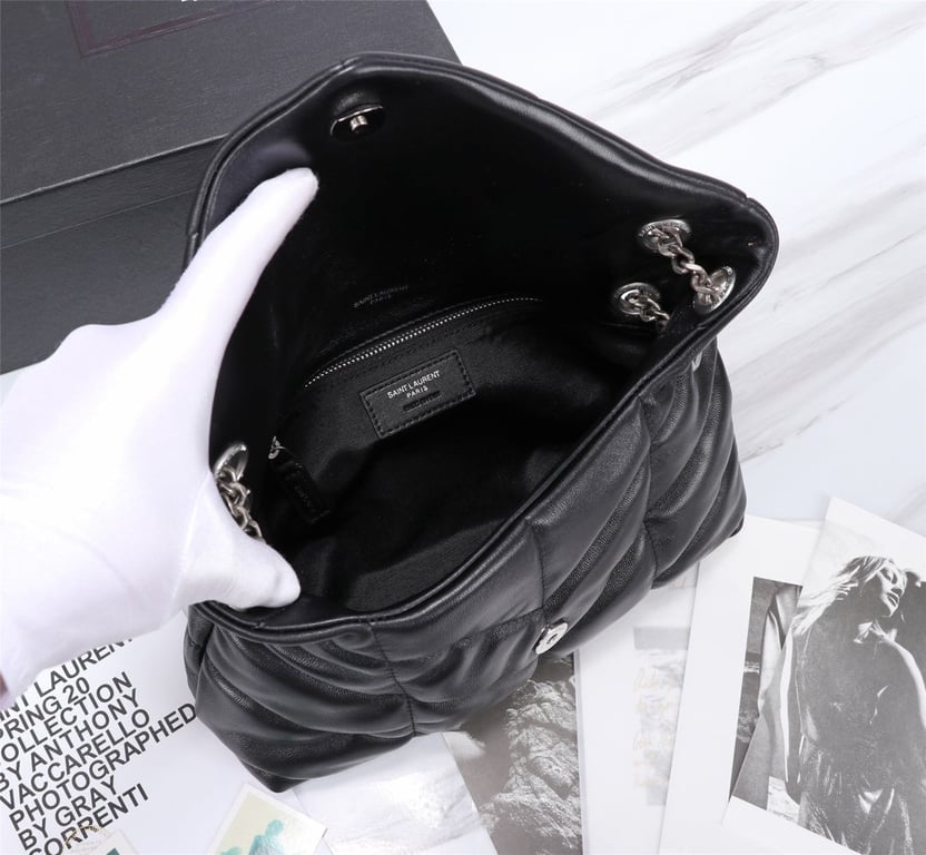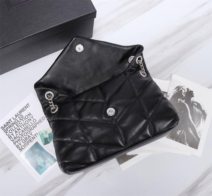 - SAINT LAURENT’S PUFFER SMALL CHAIN BAG IN QUILTED LAMBSKIN BLACK SILVER