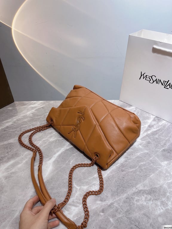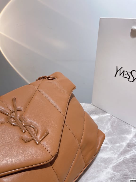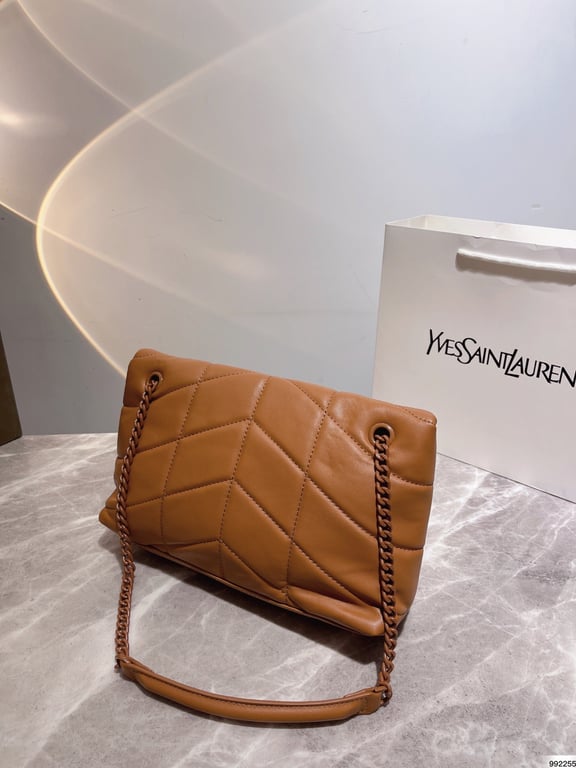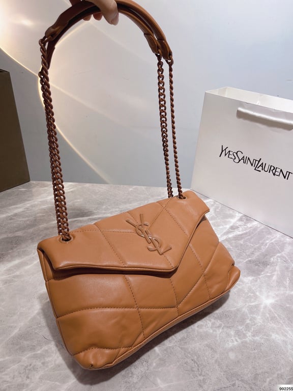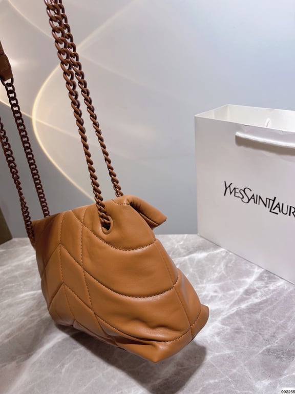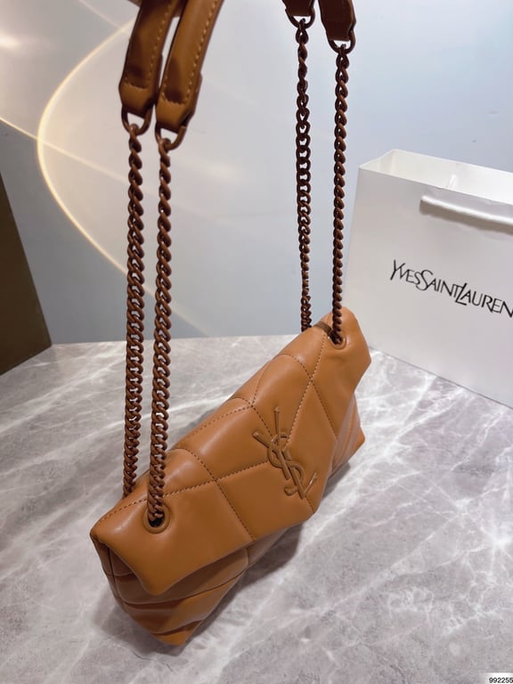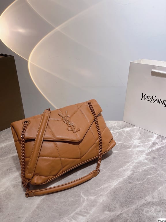 SAINT LAURENT PUFFER SMALL CHAIN BAG IN QUILTED LAMBSKIN DARK HONEY 5774761EL077724