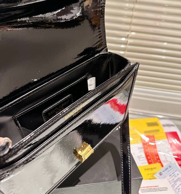 SAINT LAURENT SOLFERINO MEDIUM SATCHEL IN LACQUERED PATENT LEATHER BLACK 23CM