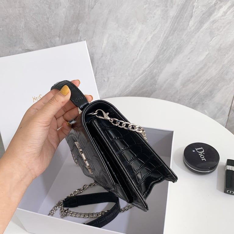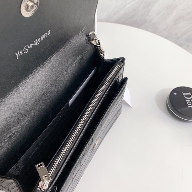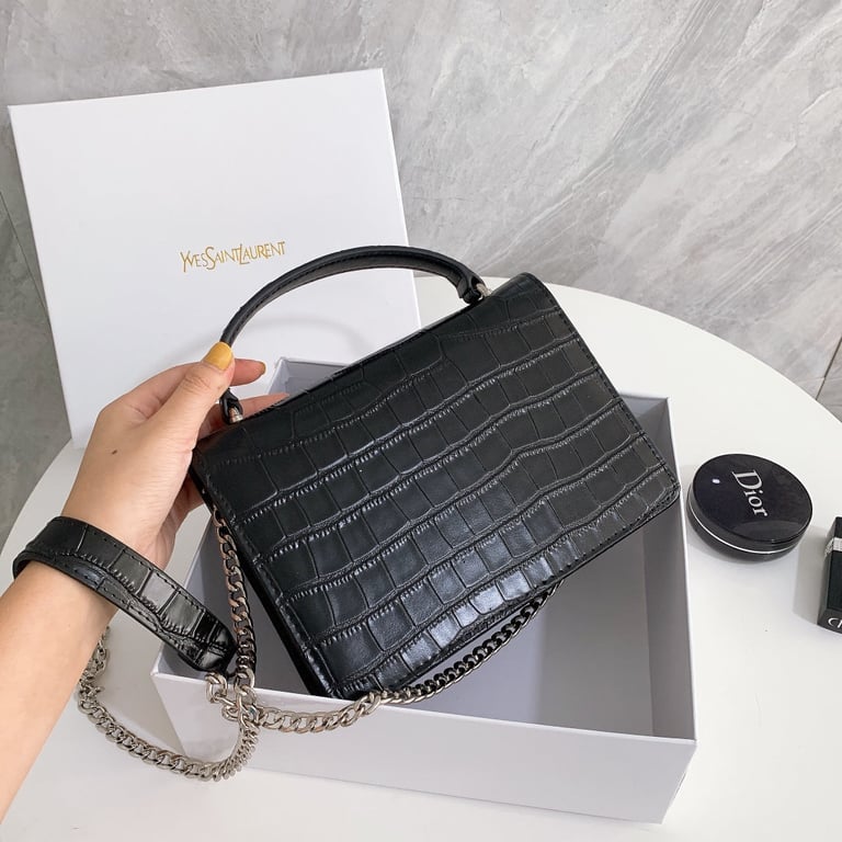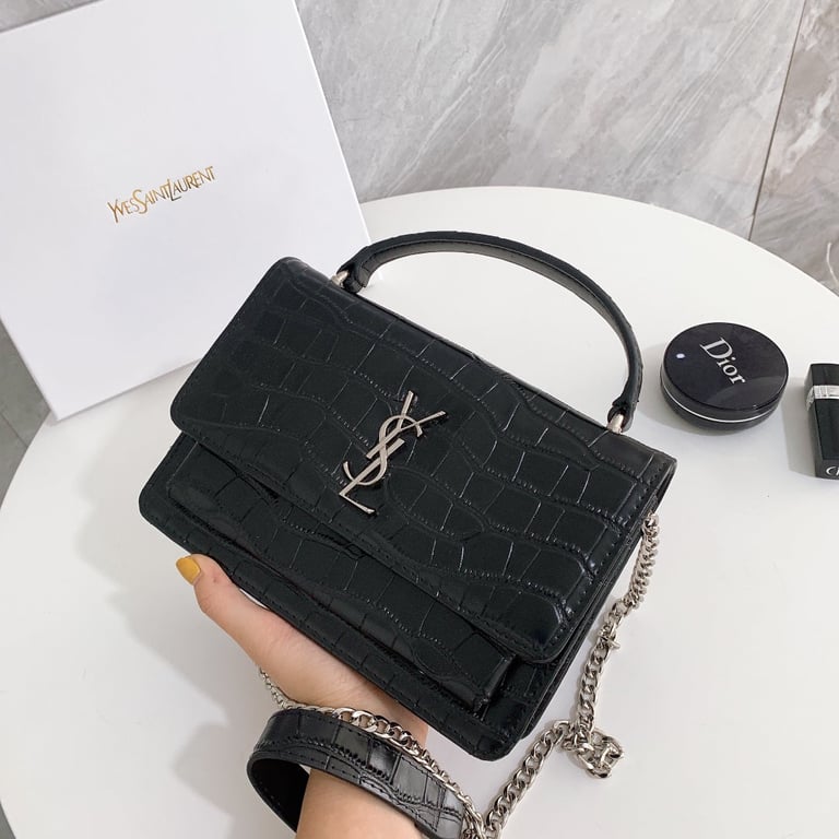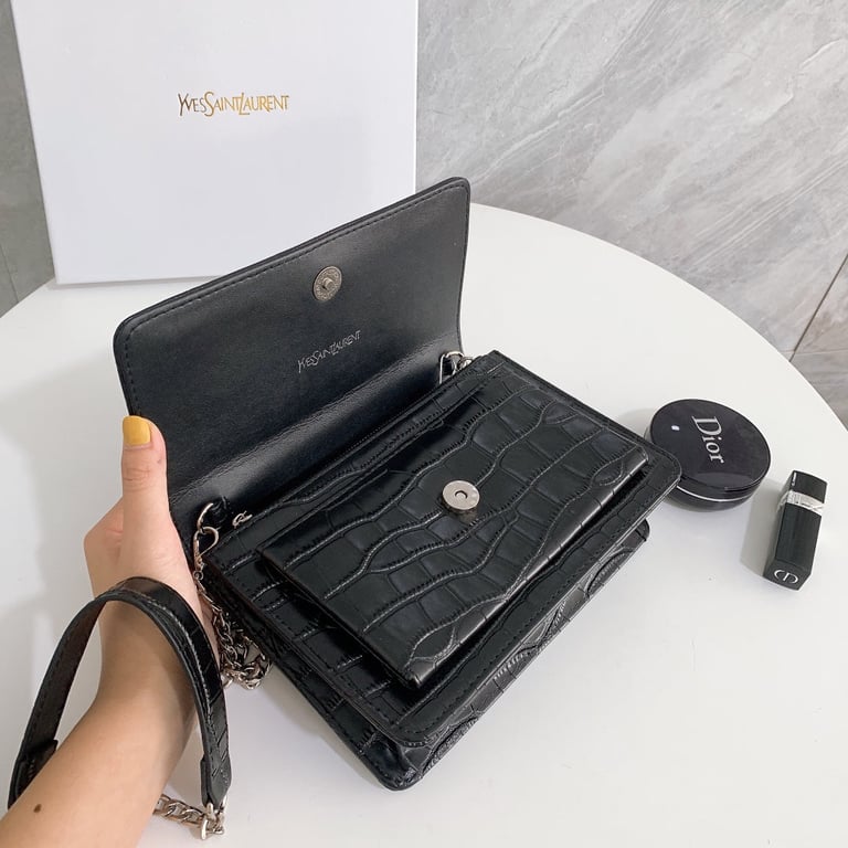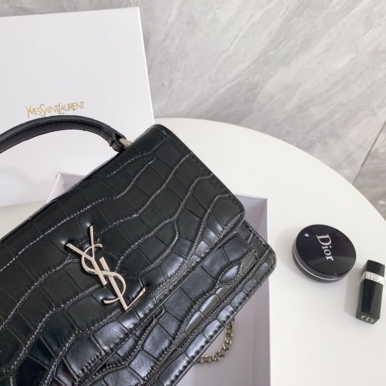 SAINT LAURENT SUNSET CROC BAG EMBOSSED SHINY BLACK SILVER