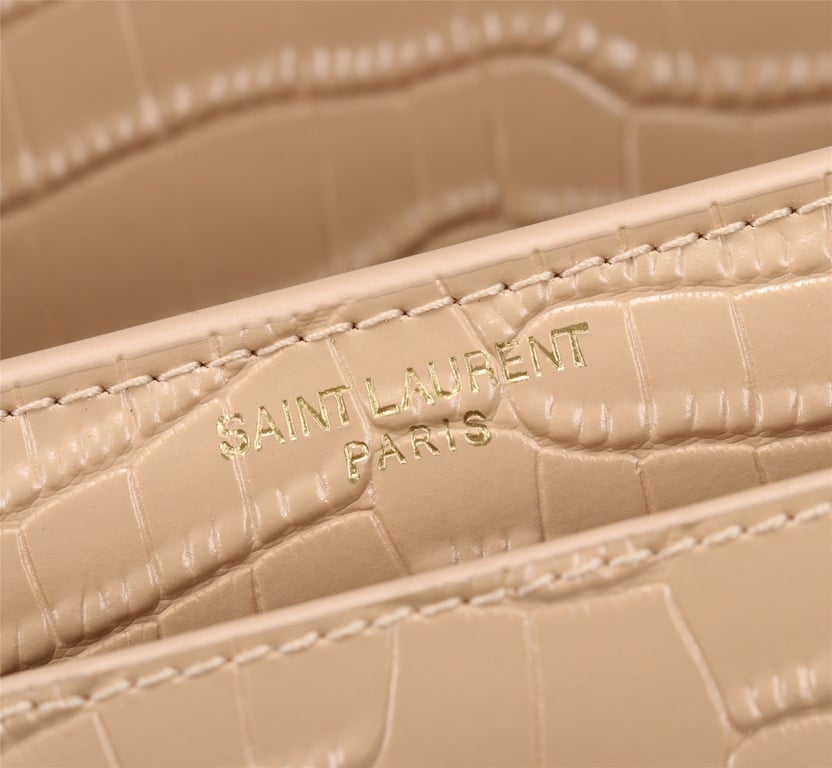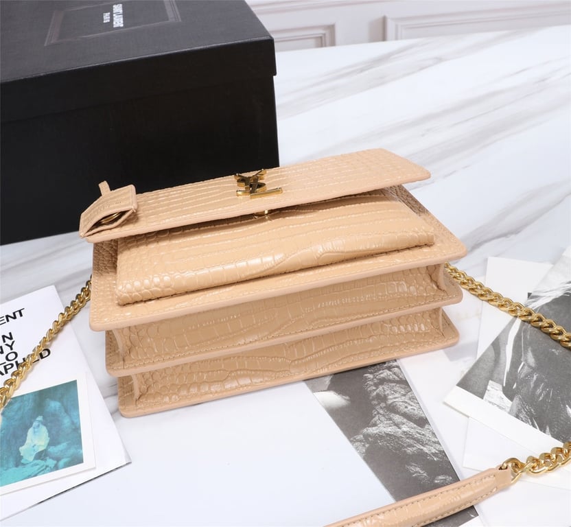 SAINT LAURENT SUNSET MEDIUM CHAIN BAG IN CROCODILE EMBOSSED SHINY APRICOT 22CM