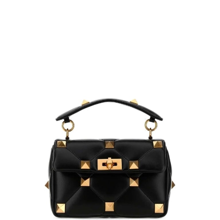 VALENTINO GARAVANI ROMAN STUD CHAIN LINK SHOULDER BAG IN BLACK